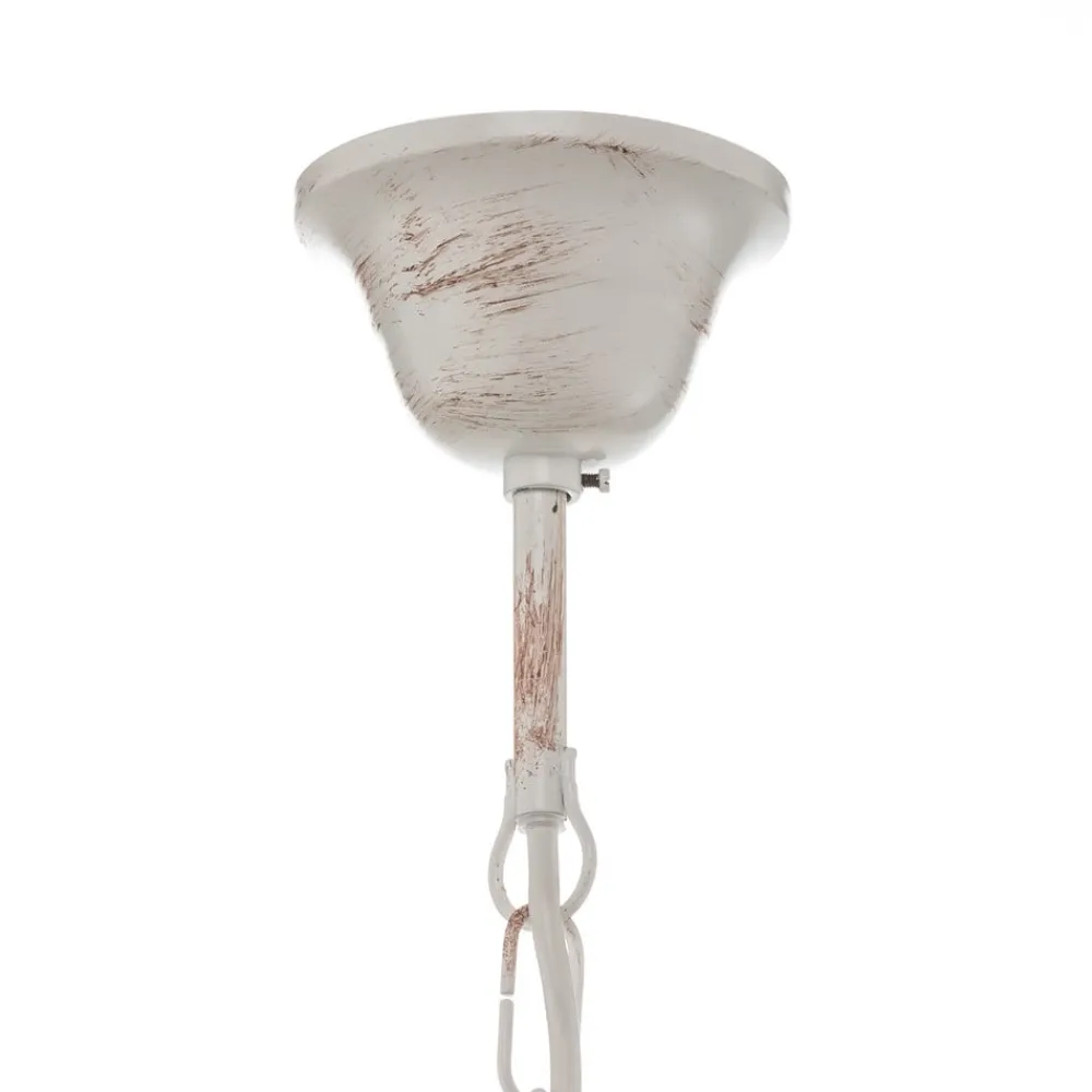 Lysekrone Pompei forener rustik charme med tidløs elegance og er fremstillet af højkvalitets jern. Den hvide antikke farve giver lysekronen et særligt præg, der passer harmonisk ind i forskellige indretningsstilarter. Uanset om den hænger i stuen, køkkenet eller spisestuen, sætter denne lysekrone stilfulde accenter og skaber en indbydende atmosfære.