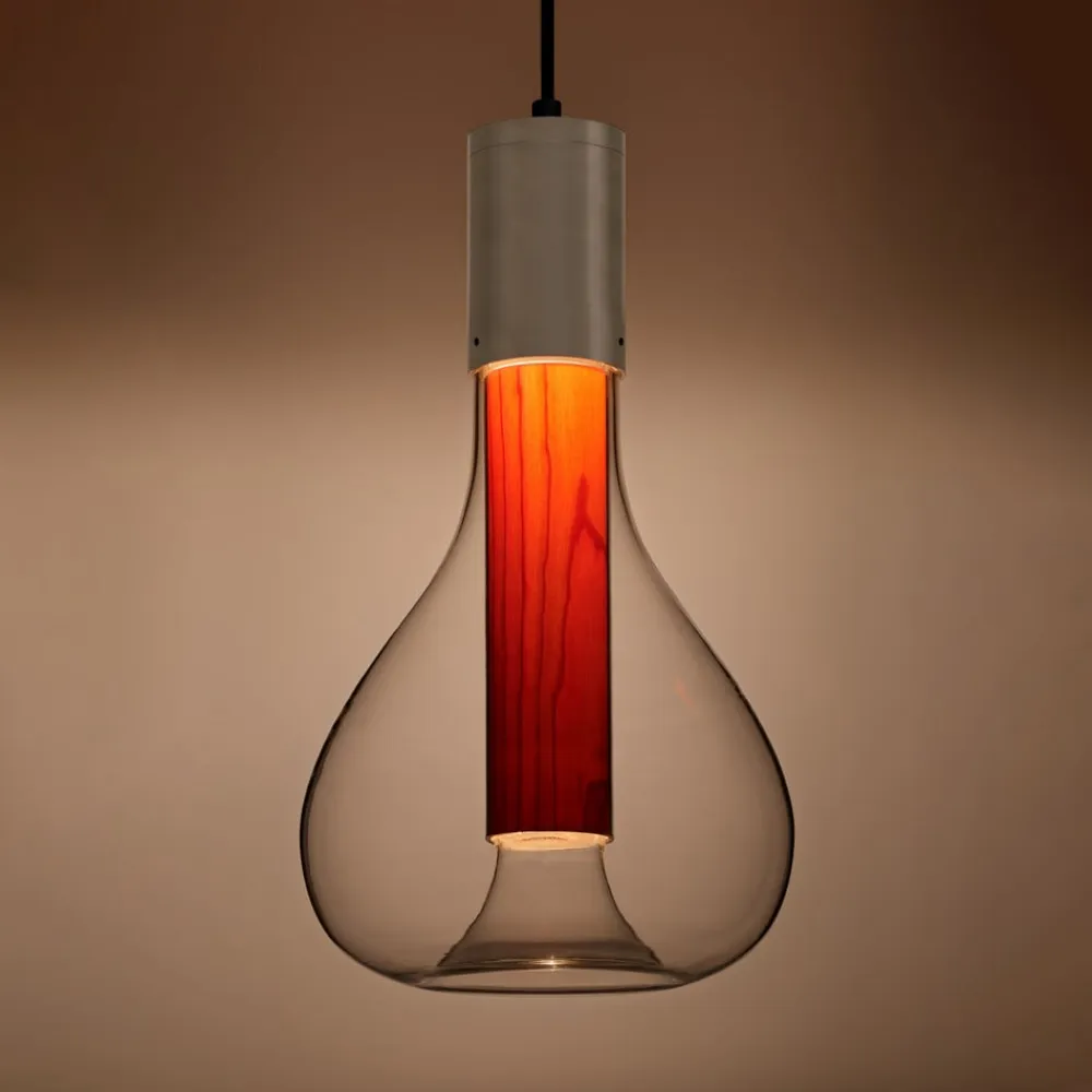 LZF Eris LED-pendellampe, glas, aluminium/kirsebær