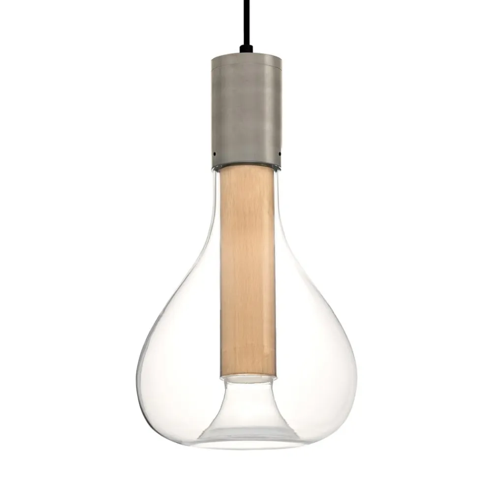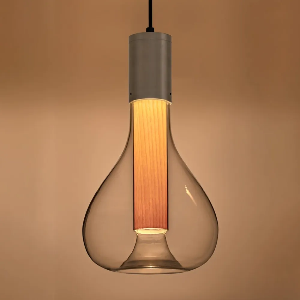 LZF Eris LED-pendellampe, glas, aluminium/bøg