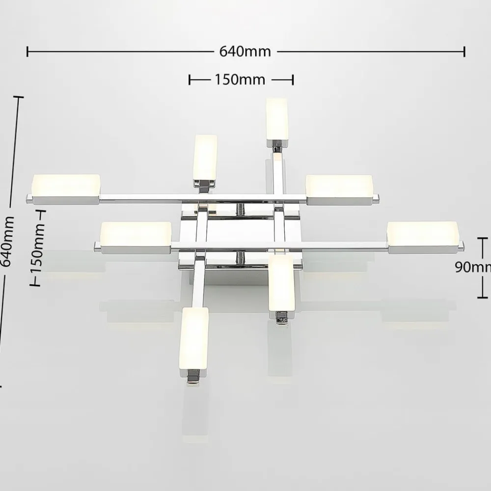 LED-loftlampe Mally med 8 lyskilder i krom