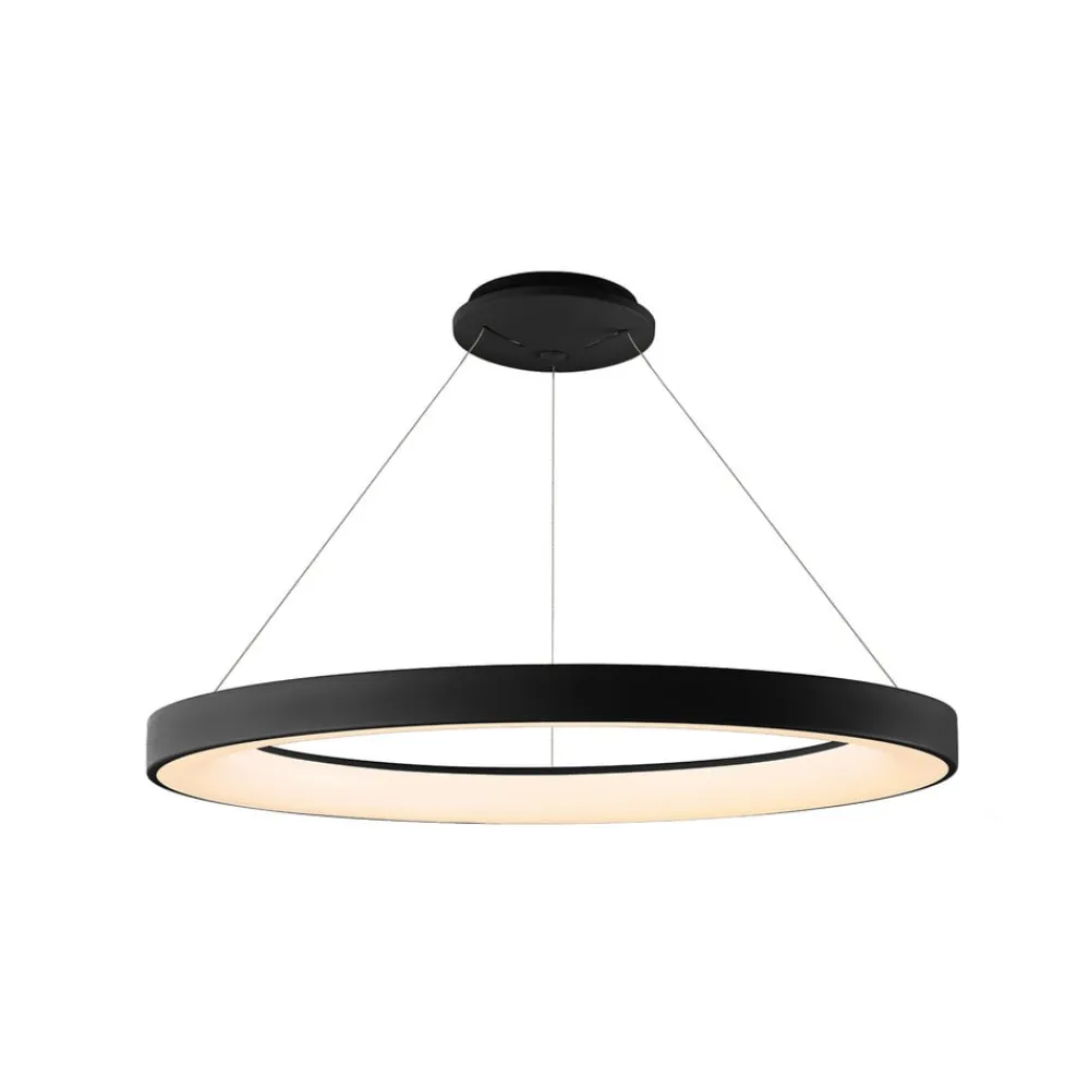Niseko II hængelampe med CCT-lysstyring og fjernbetjening Skærmen på Niseko II hængelampe er designet i form af en ring. Den hænger fra den runde baldakin på tre kabler og har et satineret akryldæksel på indersiden, hvorigennem lyset fra de indbyggede LED’er udsendes homogent. Armaturet leveres med en fjernbetjening og giver fleksibilitet i belysningen, da lyset kan vælges fra varmhvid til universalhvid og dæmmes trinløst takket være CCT-lysstyring. Alternativt kan lyset styres via smartphone ved hjælp af den gratis Mantra-app, der fås til Android og iOS. Hængelampen med LED er en fleksibel lyskilde til spisebordet, stuen eller køkkenet og er kendetegnet ved en lang levetid og høj holdbarhed på antal tænd/sluk.