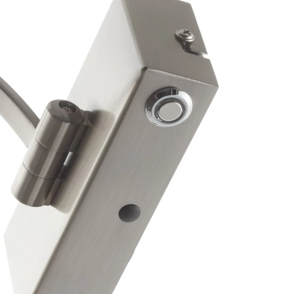 Dæmpbar Matisse LED-væglampe med bevægelig arm Den moderne og tidløse Matisse LED-væglampe er ideel til belysning af malerier eller spejle. Den fremspringende arm, som et aflangt, smalt armaturhoved er fastgjort til, kan bevæges op og ned. Det gør det nemt at justere ikke bare højden, men også lysstrålens retning. Lyset udsendes direkte over hele længden og skinner i en varm hvid farve. En afbryder er integreret i det vinklede vægbeslag. Den kan bruges til at tænde eller slukke for lyset. Den har også en lysdæmper, som husker den sidst valgte indstilling takket være hukommelsesfunktionen.