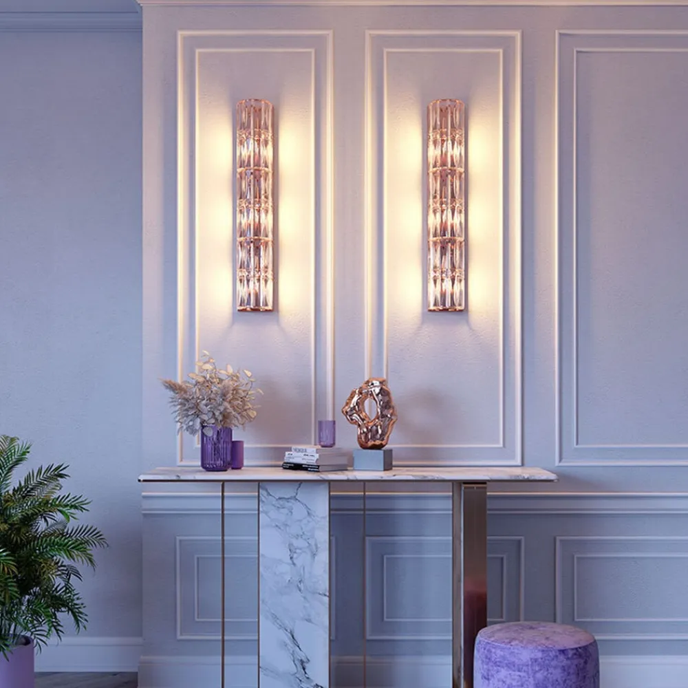 Maytoni Facet væglampe, højde 75,2 cm, guldfarvet, glas
