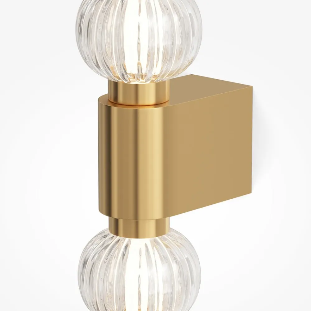 Amulet LED-væglampe med støbte glaskugler, 3.000 K De guldfarvede metalbeslag på Amulet LED-væglampen fremhæver dens accentdekor i form af prægede støbte glaskugler. Lyskilden er en LED-lysstrimmel, der er skjult under en akryldiffusor. Amulet giver et behageligt varmhvidt lys.