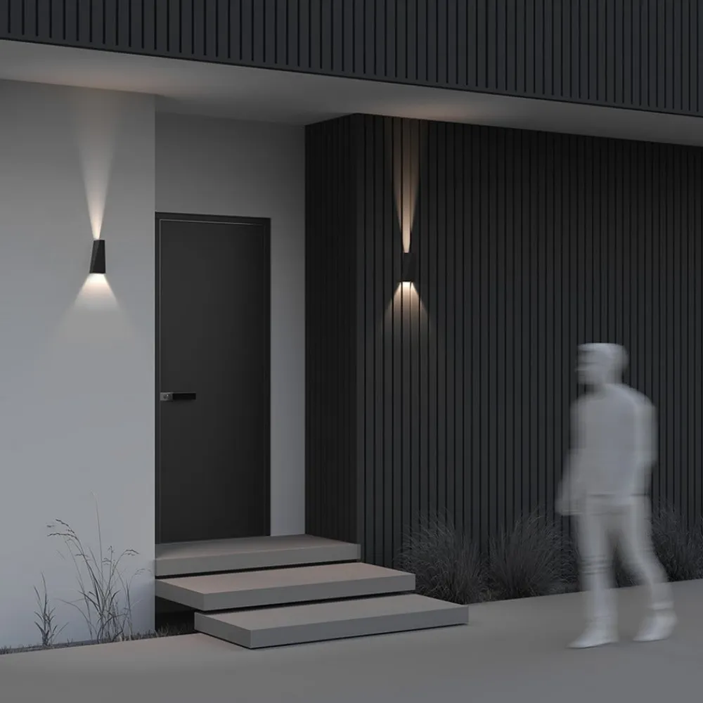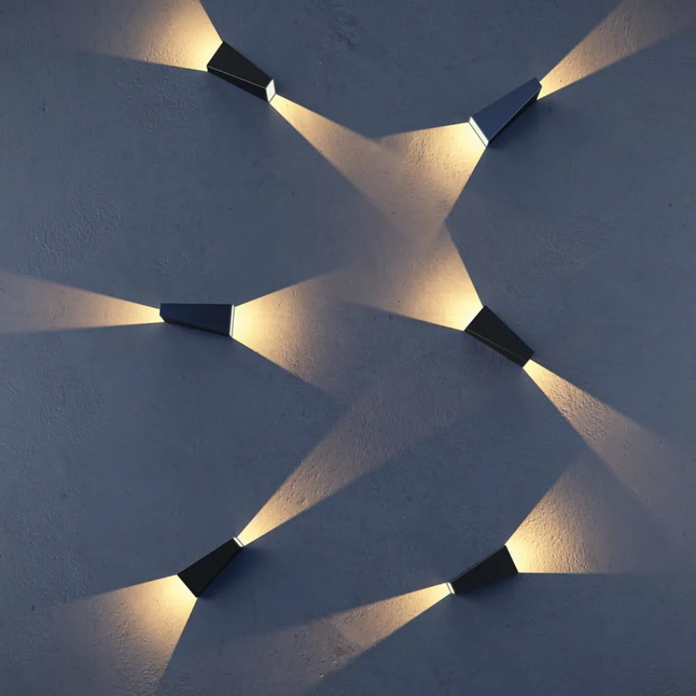 Robust, opad- og nedadlysende Times Square LED-væglampe Times Square LED udendørs væglampe imponerer først og fremmest med sit ultramoderne, kantede design, som gør den til et dekorativt element i facadedesignet, selv når den er slukket. Et andet plus er den robuste forarbejdning af huset, der er fremstillet af temperatur- og korrosionsbestandigt metal. Times Square giver et blidt opadgående og nedadgående lys til sikker omgivelsesbelysning, f.eks. ved indgangen til et hus.