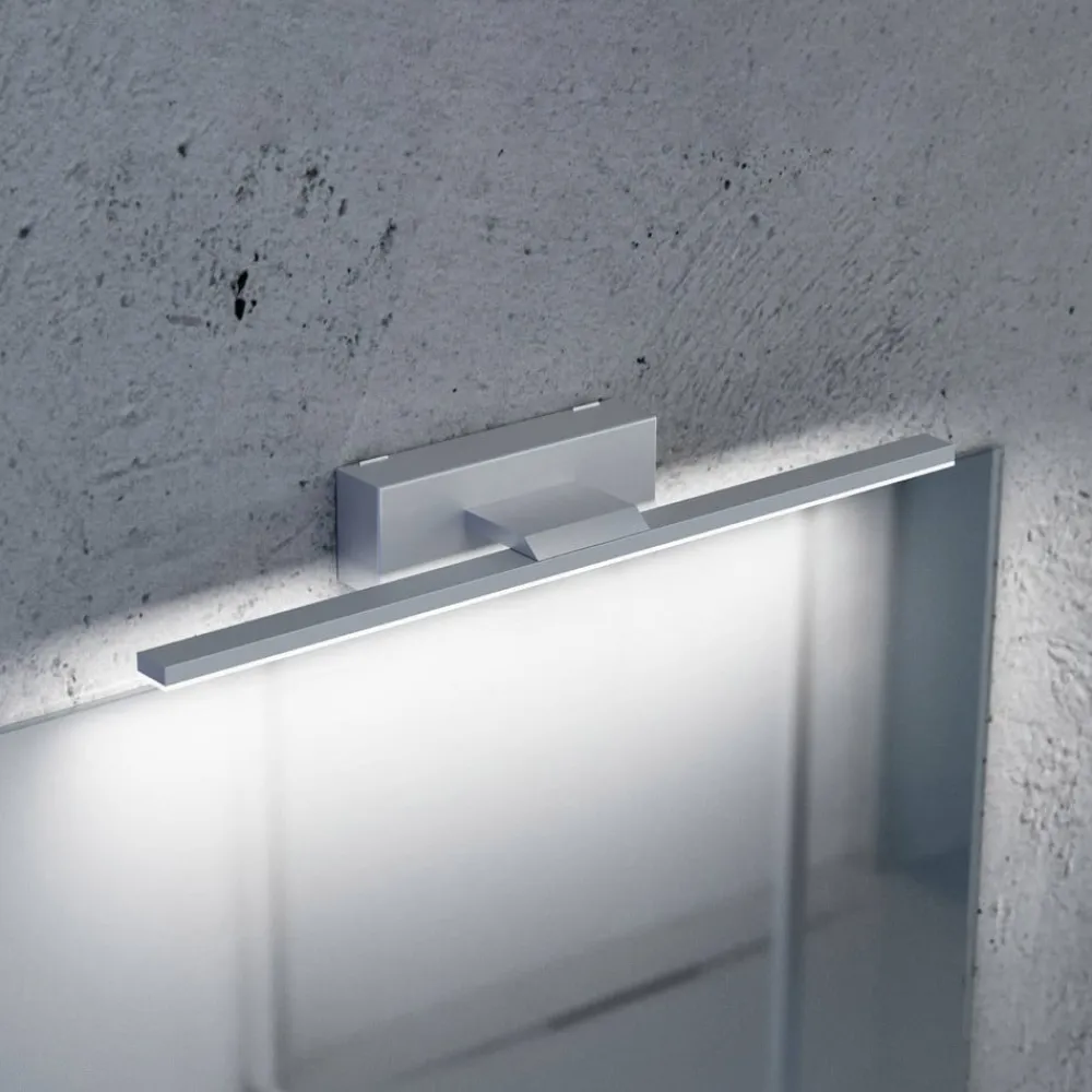 LED-væglampe Miroir forener stilfuldt design med funktionel belysning og sætter præg på ethvert rum. Med sine klare linjer og den eksklusive overflade i aluminium passer den perfekt ind i moderne boligindretning. Den integrerede LED-teknologi sikrer en jævn og blændfri belysning, der er ideel til spejle eller billeder. Takket være kapslingsgraden IP44 er lampen også velegnet til brug i badeværelser, hvilket understreger dens alsidighed.