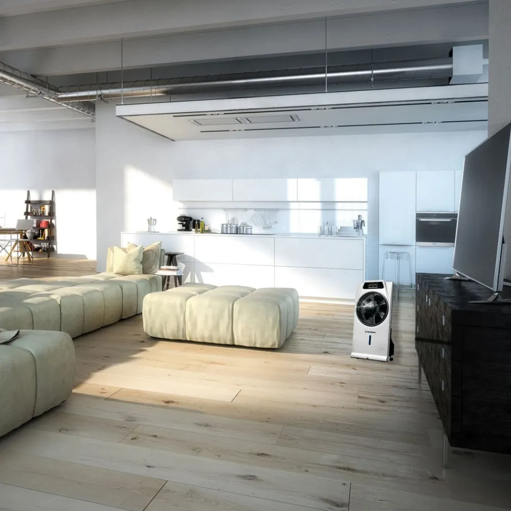 Kraftfuld gulvventilator Cascata med integreret luftfugter