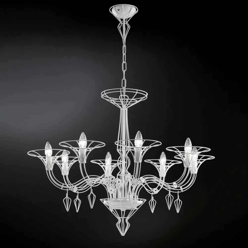 Dedalo lysekrone, 8 lyskilder, hvid