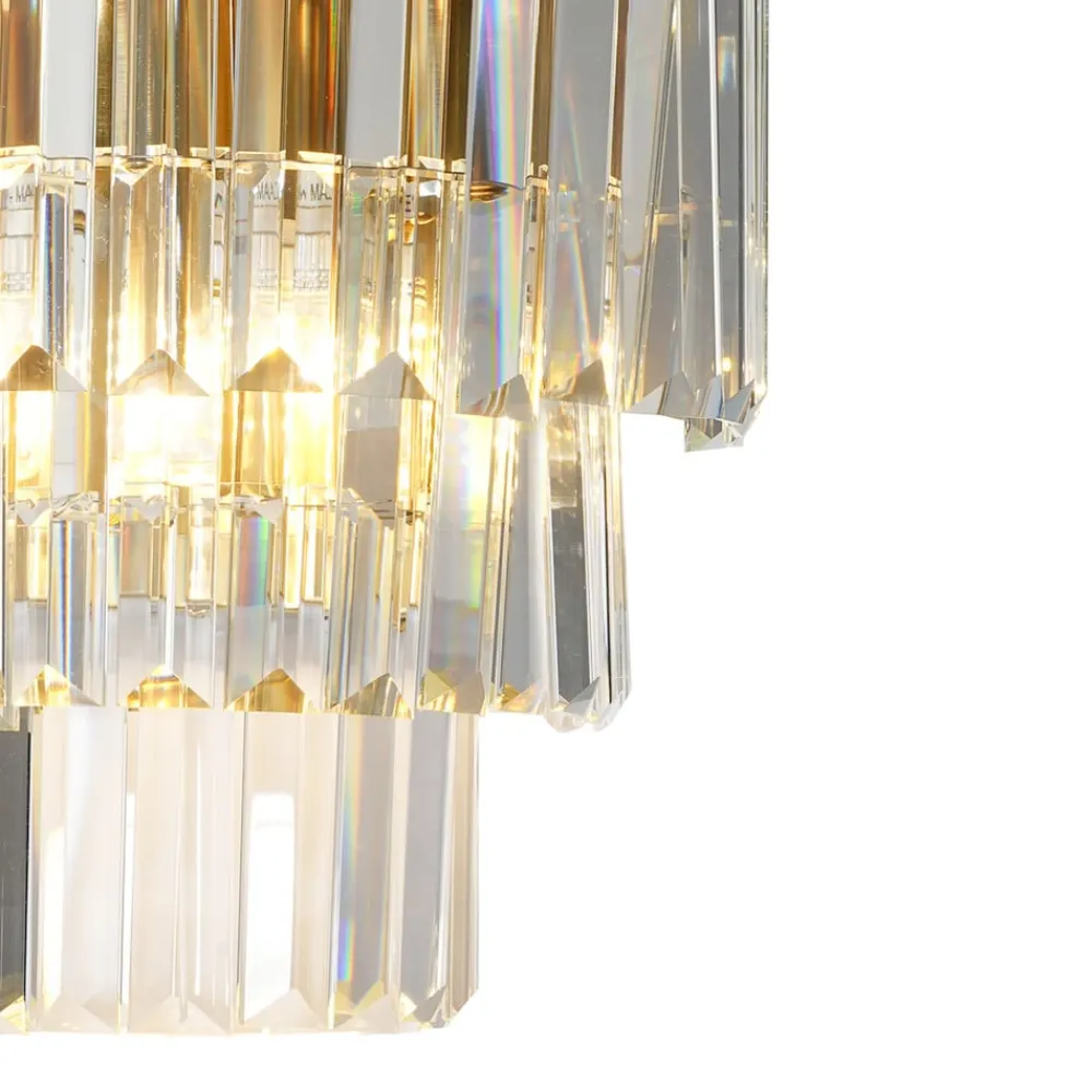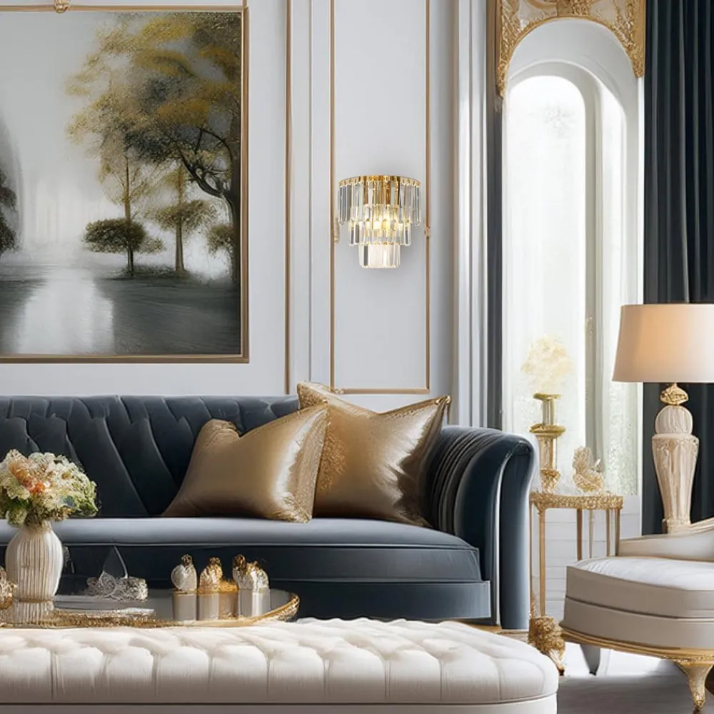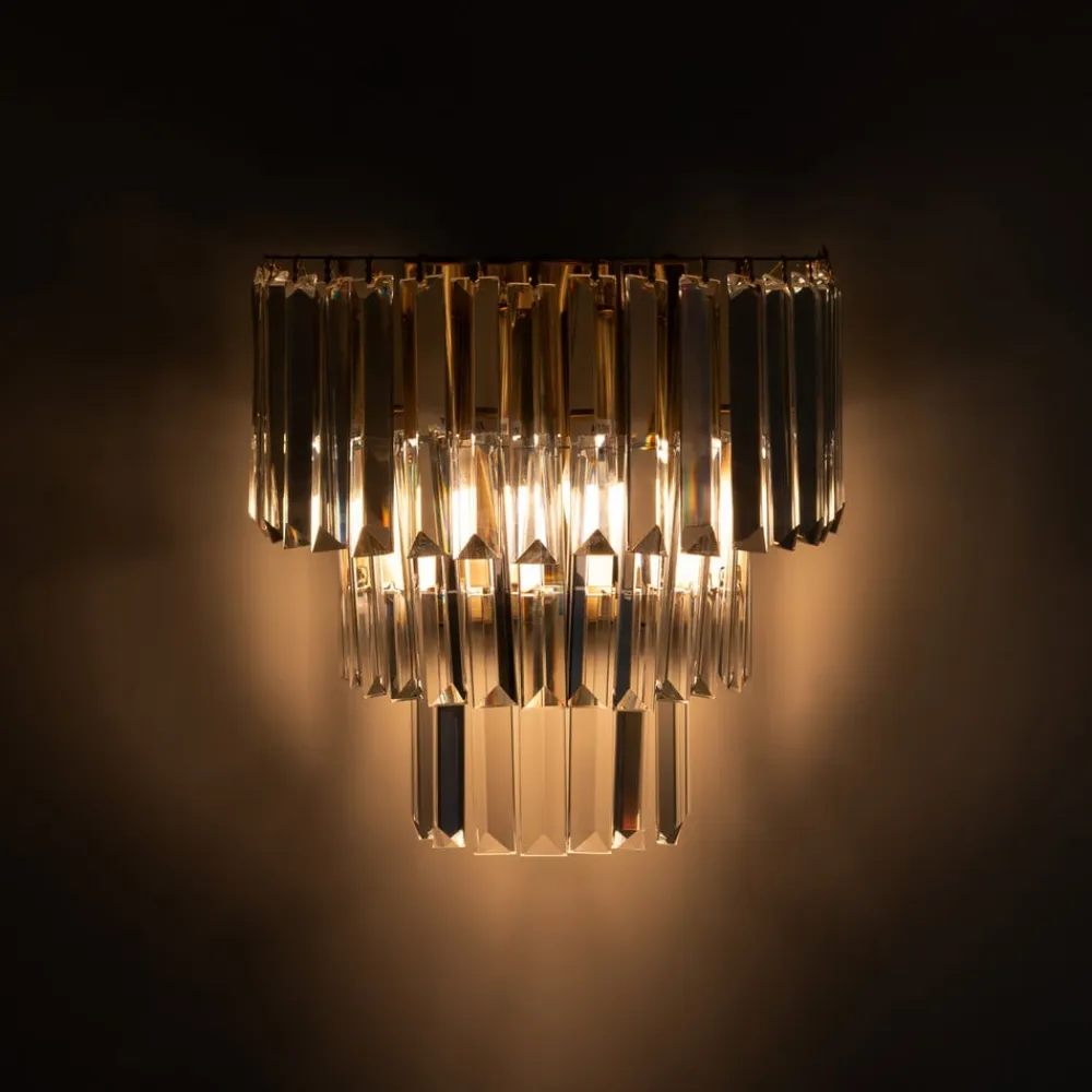 Væglampe Milano kombinerer elegant design med funktionel belysning og er et highlight i enhver bolig. Den er fremstillet af højkvalitets metal og glas og stråler i en elegant kombination af guld og transparent krystal. Denne lampe er ideel til stuen eller entreen og passer perfekt ind i forskellige indretningsstilarter.