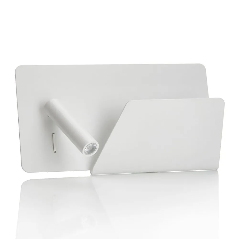 LED væglampen Suau, som er blevet tegnet af designerduoen Nahtrang, er et ægte multitalent blandt væglamper. Den er takket være den integrerede LED teknik ikke kun særdeles energieffektiv, men også særdeles praktisk takket være den kompakte hylde. Derudover er der integreret et USB ladestik, som gør det muligt at oplade mobilen eller tabletten bekvemt og sikkert opbevaret i holderen. Spotten kan justeres individuelt, hvilket muliggør en målrettet belysning. Lyset fra de fast installerede LED’er afgives blidt til omgivelserne og oplyser dem med ca. 3.000 kelvin i en varm hvid farve. Takket være sit mathvide metalstel integreres Suau harmonisk med det tilstedeværende interiør. (inkl. vippekontakt)