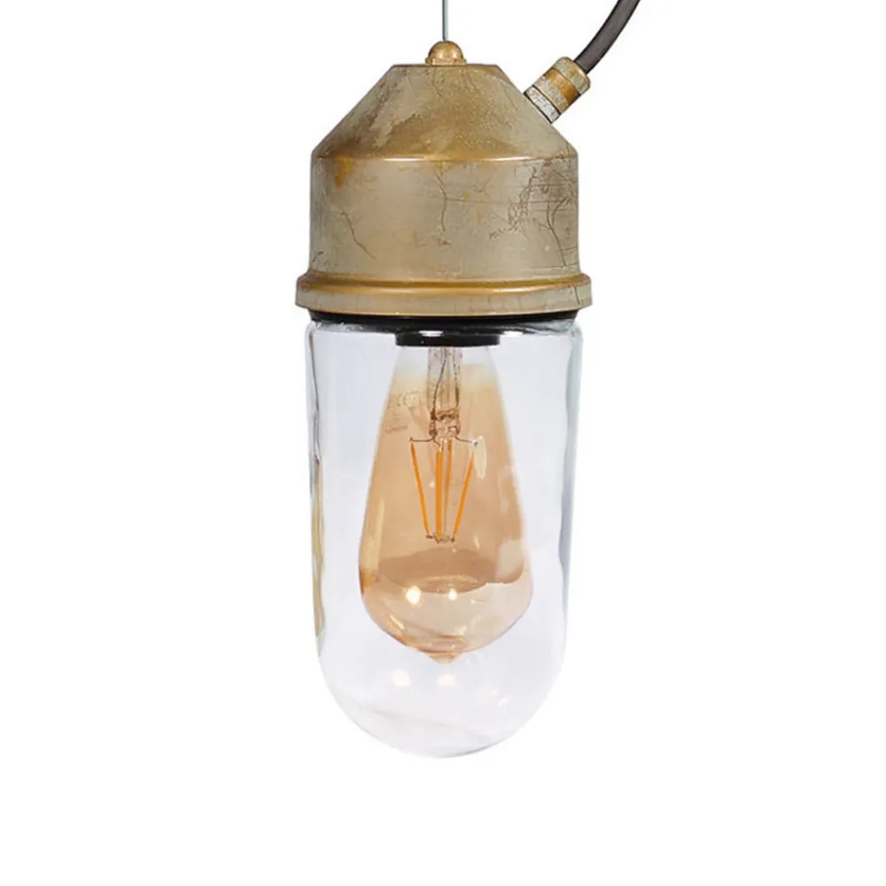 Hængelampe 1951N, antik messing, lige glas, klar