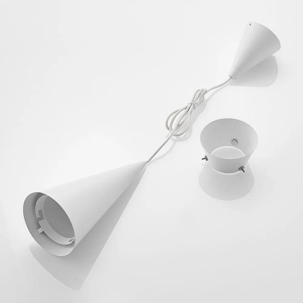 Naoh har et upåvirket farveskema i hvidt, hvilket er naturligt og subtilt. Et overbevisende moderne design i to-lags form karakteriserer designsproget, hvorved metalskærmen ligner en kegle og udsender lyset hovedsageligt nedad. Dette gør pendellampe meget velegnet som bord- eller bordbelysning og kan også monteres i række med flere lys. loftsbeslag er også kegleformet og spejler således til en vis grad lampeskærmen, omend i en lidt mindre dimension. To-lags design individualiserer designet, og glødelamper er egnede lamper, der også passer godt til Naoh.