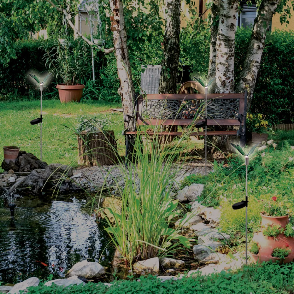 Deco-solcellelys sommerfugl, jordspyd, RGB LED