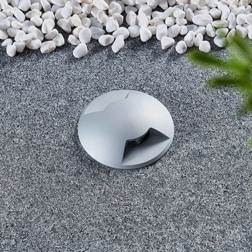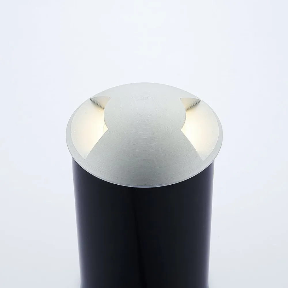 Rund nedgravningslampe Milara med titanfarvet overflade, IP67