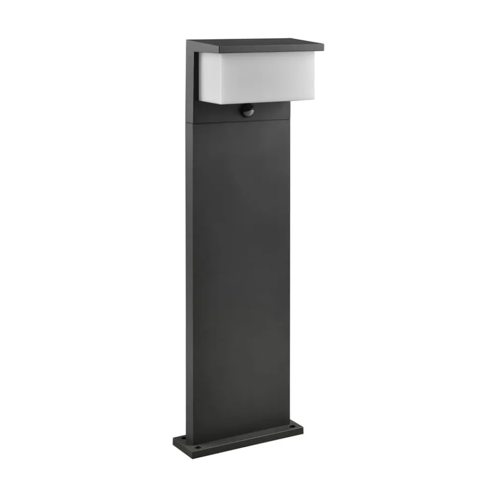 Integreret bevægelsessensor: Nestos LED-stibelysning, varm hvid, IP54 Det robuste hus på Nestos LED-stibelysningen er lavet af trykstøbt aluminium. Det er malet i antracit og beskyttet mod vandsprøjt. De integrerede LED’er producerer varmhvidt lys, som udsendes med lav blænding gennem den opalhvide diffusor. En bevægelsessensor er også inkluderet. Tekniske egenskaber: – Sensorregistreringsrækkevidde: 8 m – Sensorregistreringsvinkel: 120° – Stænktæt (IP54)