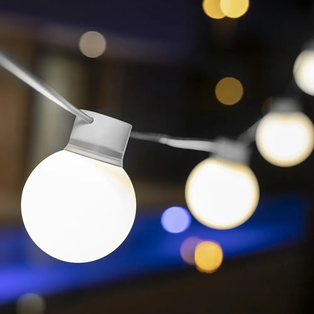 Fleksibel til indendørs og udendørs brug og samtidig tidløs i designet – LED solcellelys-kæden kan f.eks. bruges på altanen, terrassen, i stuen eller i soveværelset. Det varme lys bidrager til en hyggelig atmosfære. Lyskæden drives af et solpanel, der lagrer solenergi, og kan eventuelt også oplades med et USB-kabel. De 10 lyskilder har et sfærisk design, og det diskrete farveskema sikrer, at lyskæden nemt kan integreres i forskellige miljøer.