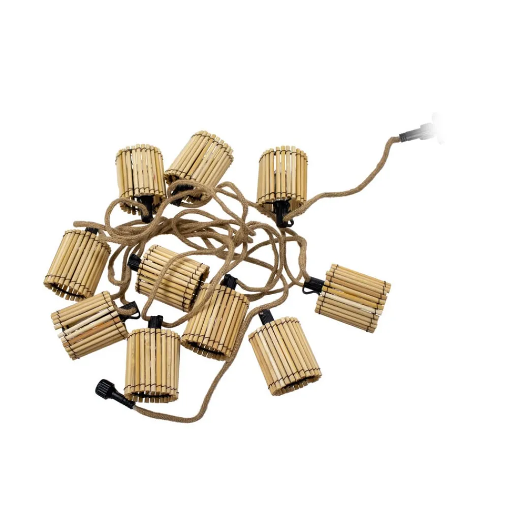 Okinawa-lyskæde med 10 pærer til udendørs brug Okinawa-lyskæden med 10 pærer og bambusskærme er en smuk dekoration til udendørs områder som terrasser eller balkoner. Kæden leveres med ti LED-pærer med E12-sokkel og to ekstra pærer. Takket være IP44-beskyttelsesgraden (stænktæt) er den sikker at bruge udendørs. Også velegnet til indendørs brug. Op til fire lyskæder kan kobles sammen.