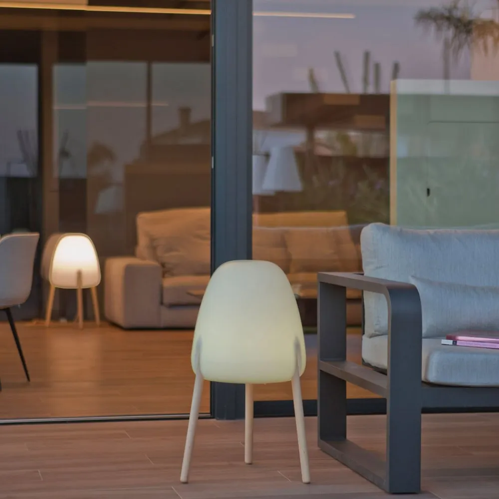 Ikke kun på grund af designet og kombinationen af en hvid skygge lavet af polyethylen og en trebenet stel lavet af let træ, men også på grund af den fleksibelt justerbare belysning, er Rocket standerlampe et højdepunkt på hver terrasse. Det kan placeres hvor som helst i det udendørs område uden et irriterende kabel, fordi der er et solpanel øverst på skærmen, der oplader det integrerede batteri i løbet af dagen ved hjælp af solenergi. Hvis solen ikke skinner nok, er der også mulighed for at oplade lampen via et kabel i stikkontakt . Skærmen er UV-bestandig og vejrbestandig, trærammen er også blevet behandlet til udendørs brug, og hele lampen er optimalt beskyttet mod vejrpåvirkningen med kapslingsklasse IP65.