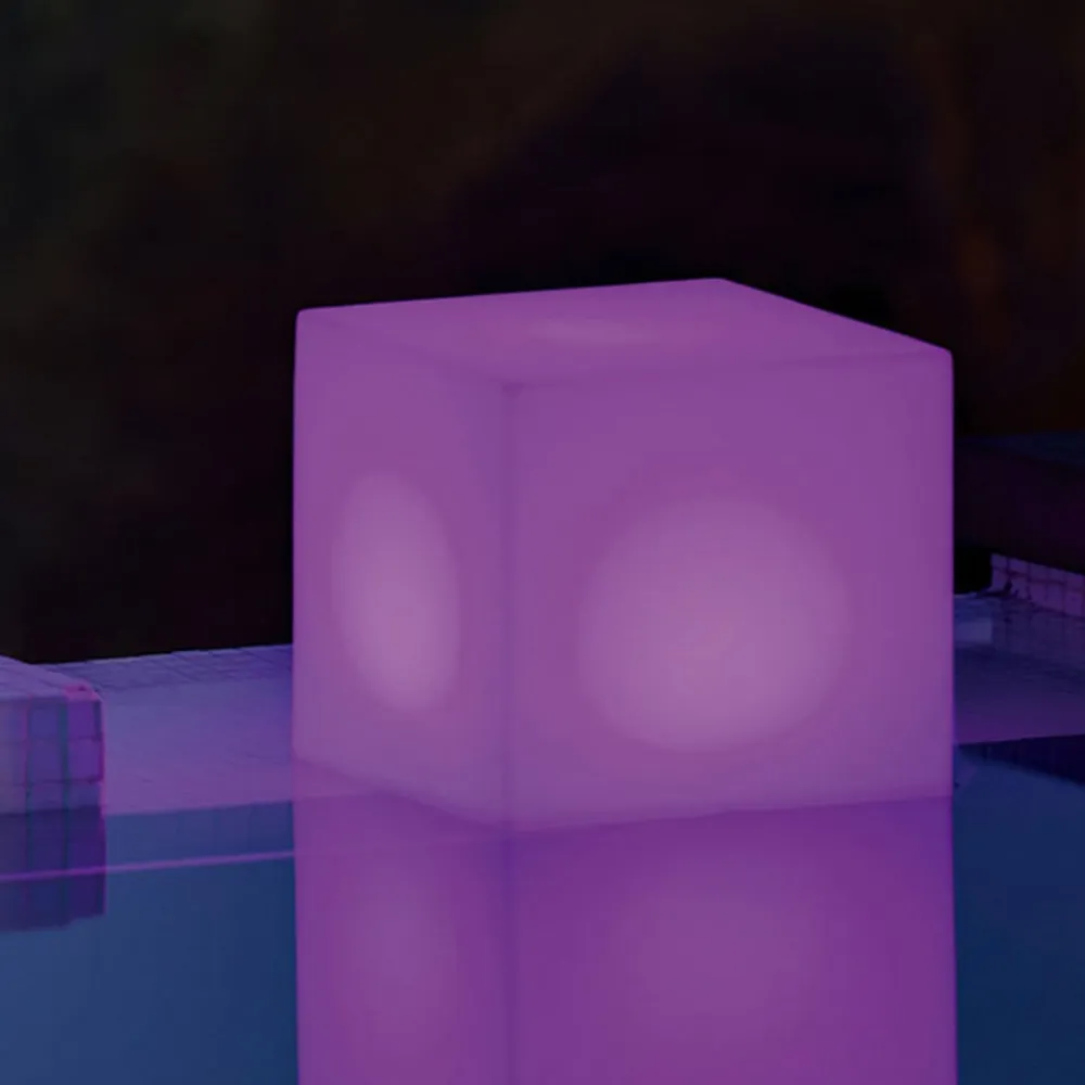 Cuby terningformet solcellelampe med batteri og ladekabel En lysende terning – det er Cuby solcellelampen fra Newgarden. Den lysende krop er lavet af gennemsigtig polyethylen, et materiale, som næsten alle Newgardens lygter er lavet af, og som er kendetegnet ved sin modstandsdygtighed over for ekstreme temperaturer og UV-bestandighed. Takket være kapslingsgraden på IP65 er der intet i vejen for at bruge den udendørs. Den lysende kube er udstyret med RGB-lysdioder og hvide lysdioder, så den kan belyses i en af utallige klare farver samt i lysfarven varmhvid. Indstillingerne foretages ved hjælp af den medfølgende fjernbetjening. Armaturets batteri kan oplades i sollyset uden omkostninger ved hjælp af det integrerede solpanel. På dage, hvor der ikke er nok sollys, kan batteriet også oplades i stikkontakten ved hjælp af det medfølgende ladekabel for at sikre en lang belysningstid om aftenen. Cuby-lyskuben er et produkt fra den spanske armaturproducent Newgarden. Newgardens produktportefølje spænder fra en bred vifte af armaturer til indendørs og udendørs brug til lysende urtepotter og lysende møbler. Næsten alle producentens produkter er lavet af polyethylen, en plast, der ikke kun er 100 % genanvendelig, men også meget robust – Inkluderer opladningskabel og fjernbetjening