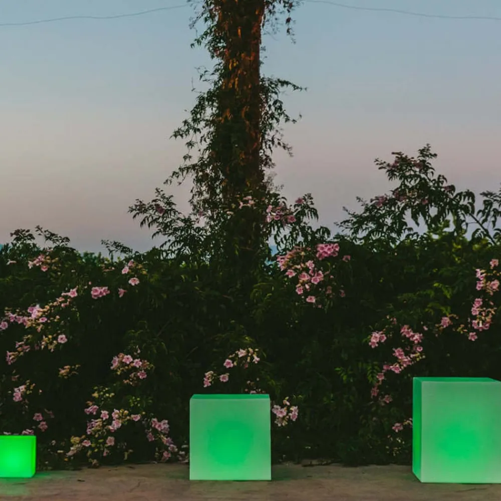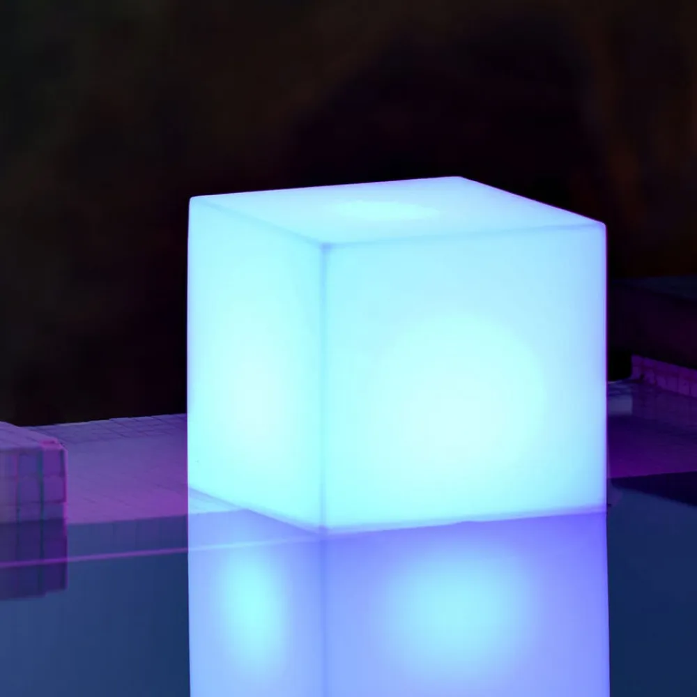 Cuby terningformet solcellelampe med batteri og ladekabel En lysende terning – det er Cuby solcellelampen fra Newgarden. Den lysende krop er lavet af gennemsigtig polyethylen, et materiale, som næsten alle Newgardens lygter er lavet af, og som er kendetegnet ved sin modstandsdygtighed over for ekstreme temperaturer og UV-bestandighed. Takket være kapslingsgraden på IP65 er der intet i vejen for at bruge den udendørs. Den lysende kube er udstyret med RGB-lysdioder og hvide lysdioder, så den kan belyses i en af utallige klare farver samt i lysfarven varmhvid. Indstillingerne foretages ved hjælp af den medfølgende fjernbetjening. Armaturets batteri kan oplades i sollyset uden omkostninger ved hjælp af det integrerede solpanel. På dage, hvor der ikke er nok sollys, kan batteriet også oplades i stikkontakten ved hjælp af det medfølgende ladekabel for at sikre en lang belysningstid om aftenen. Cuby-lyskuben er et produkt fra den spanske armaturproducent Newgarden. Newgardens produktportefølje spænder fra en bred vifte af armaturer til indendørs og udendørs brug til lysende urtepotter og lysende møbler. Næsten alle producentens produkter er lavet af polyethylen, en plast, der ikke kun er 100 % genanvendelig, men også meget robust – Inkluderer opladningskabel og fjernbetjening
