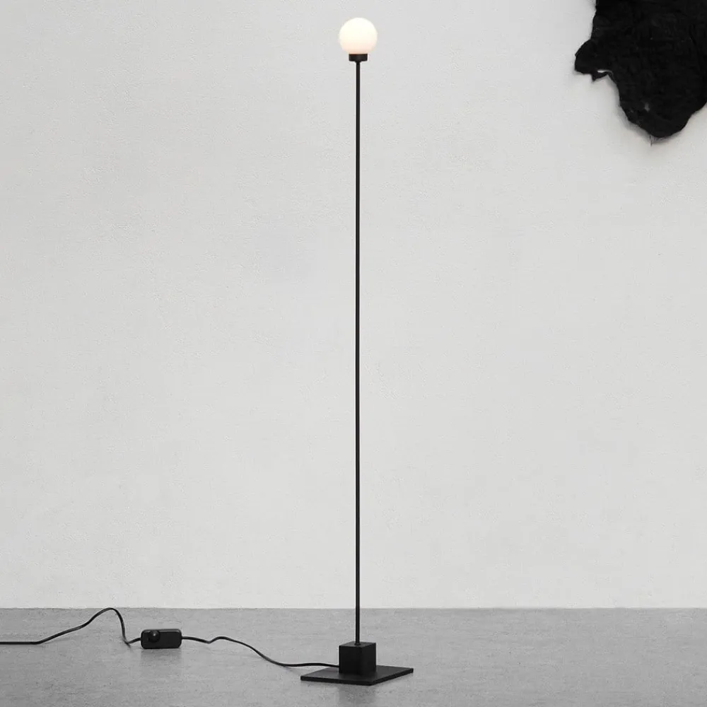 Tidløs og sofistikeret – Snowball gulvlampe i et slankt design Nogle gange skal der ikke meget til for at gøre et design overbevisende og moderne. Snowball-gulvlampen er skabt i stil med den klassiske Bauhaus-lampe og tilbyder et tidløst look, der kan integreres i mange forskellige interiører. En ret delikat metalstang stiger op fra en rektangulær base og holder den kugleformede lampeskærm lavet af frostet glas i sin øverste ende. Det sikrer, at lyset spredes blidt og jævnt i omgivelserne og skaber en behagelig atmosfære i rummet. Glasset i lampeskærmen er mundblæst og er udført i høj kvalitet. En integreret lysdæmper, som er fastgjort til forsyningskablet, gør det nemt at variere lysstyrken.