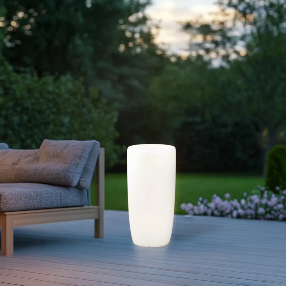 Dekorationslampen Flowerpot M overbeviser med sit moderne design og brugen af højkvalitets polyethylen. Denne lampe er ikke kun et stilfuldt tilbehør, men også et funktionelt element, der giver ethvert udendørsområde et særligt præg. Den hvide farve sikrer en tidløs æstetik, der passer perfekt ind i forskellige terrasse- og havedesign.
