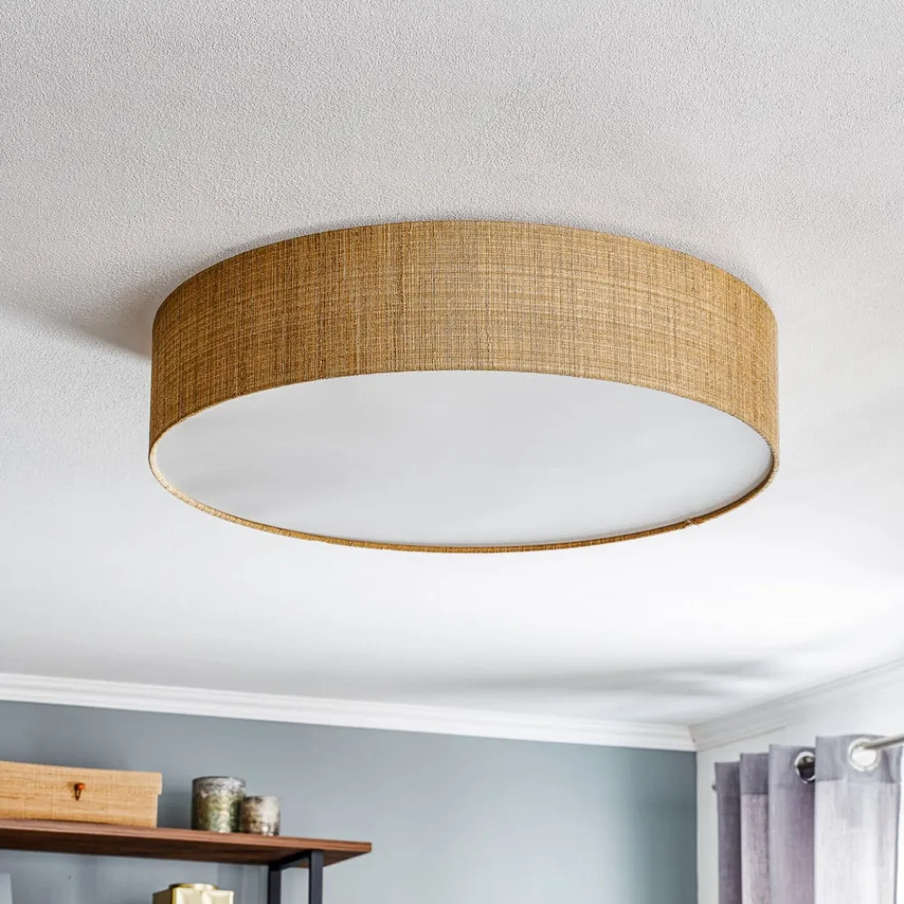 Loftlampen Turda imponerer med sit moderne design og den harmoniske kombination af tekstil, papir, PVC og stål. Den gyldne og hvide farve giver ethvert rum et elegant præg, mens den generøse størrelse på 65 cm i diameter sikrer en jævn lysfordeling. Denne lampe er ideel til stuen, soveværelset, entreen og spisestuen og passer perfekt ind i forskellige indretningsstilarter.