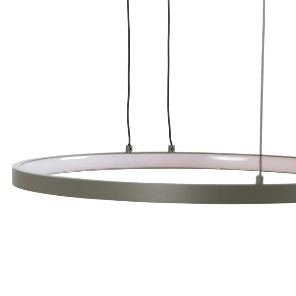 LED-hængelampen CIRCOLO forener moderne design med funktionel belysning. Den er fremstillet af højkvalitets aluminium og stål og imponerer med sin olivengrønne farve, der giver ethvert rum et stilfuldt præg. Den integrerede LED-lyskilde giver et energibesparende og varmhvidt lys med en farvetemperatur på 3.000 K, der skaber en behagelig atmosfære i stuen, spisestuen eller køkkenet. Med en fremragende farvegengivelse på 90 Ra fremstår farver særligt naturlige og levende.