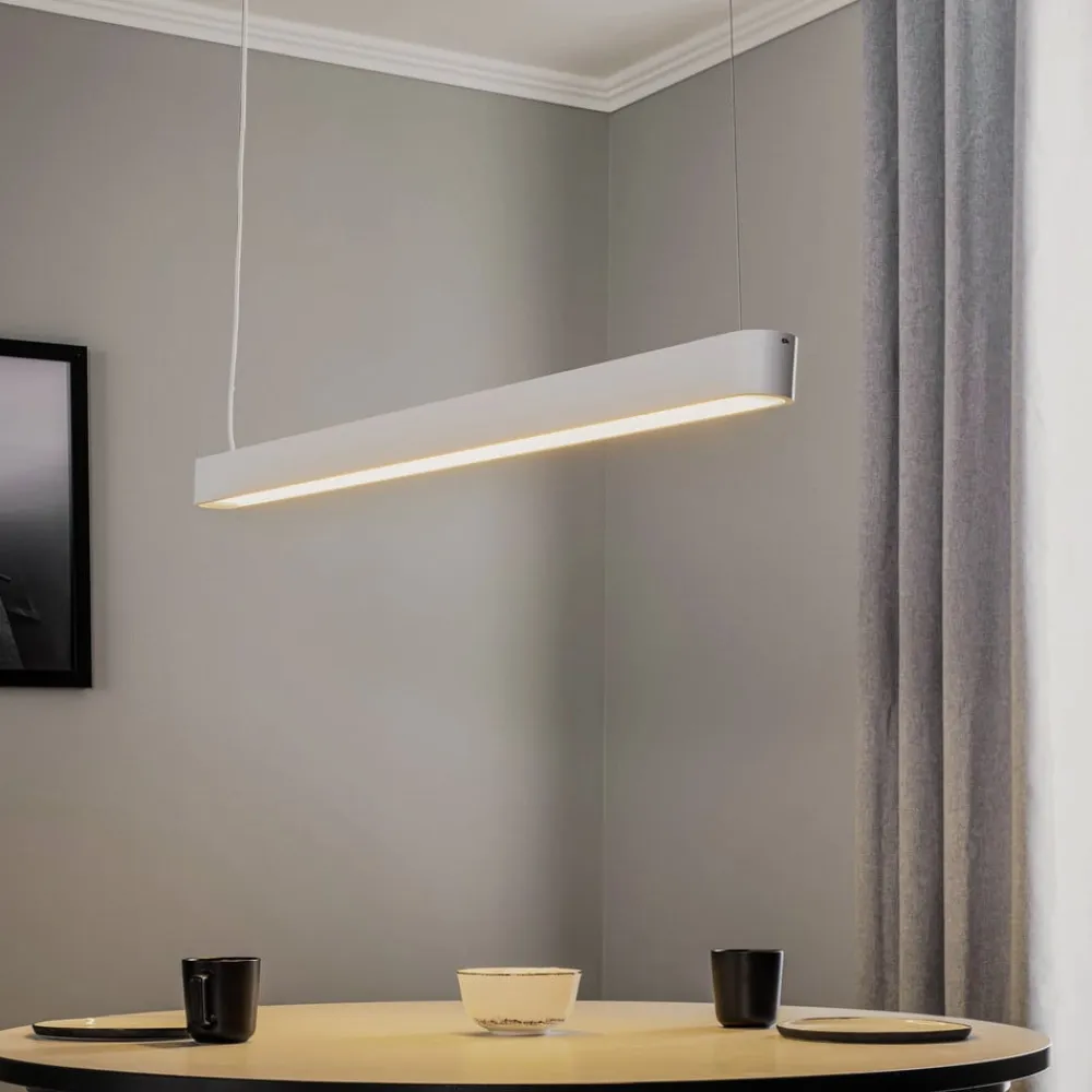 Hængelampen Soft i hvid imponerer med sit moderne design og brugen af materialer af høj kvalitet som aluminium og PMMA. Den er udstyret med en standardiseret fatning G13, der gør det nemt at udskifte LED-lyskilden, hvilket sikrer fleksibel tilpasning til individuelle belysningsbehov. Den varmhvide lysfarve på 3.000 K skaber en behagelig atmosfære, der sikrer en harmonisk stemning i både stuen, køkkenet og spisestuen.