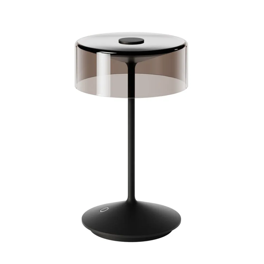 Numotion LED genopladelig bordlampe, sort, glas, IP54, dæmpbar