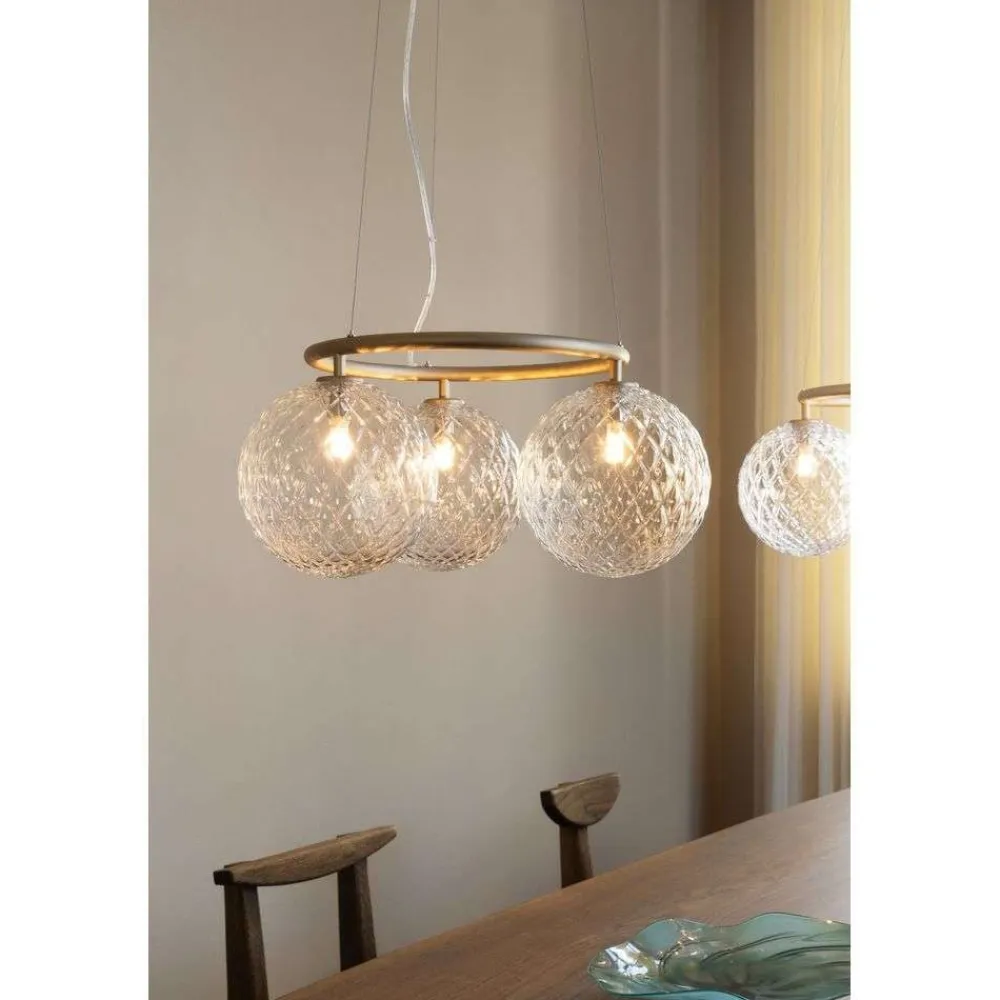 3 lyskilder lysekrone Miira 3 Circular med messingfinish, klart glas