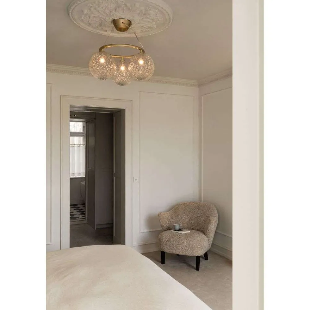 Lysekrone Miira 3 Circular i metal med messingfinish og mundblæst, klart glas udstråler det skandinaviske designs klare formsprog og passer nemt ind i mange indretningsstilarter. Farvekombinationen skaber en harmonisk æstetik, der passer perfekt ind i spisestuen og stuen. Sofie Refer’s design er baseret på subtil raffinement, der sætter præg på både moderne og klassiske indretningsstilarter.