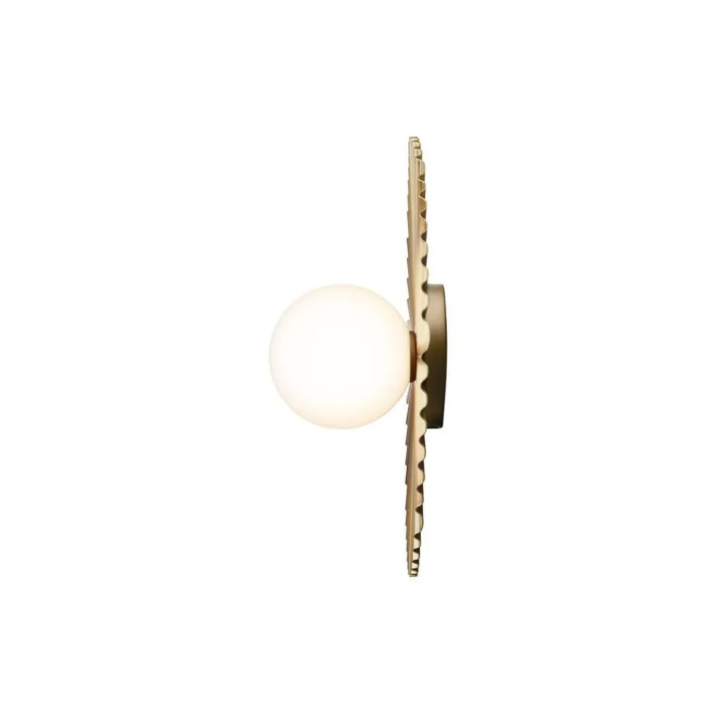 Væglampe Liila Muuse forener skandinavisk enkelhed med luksuriøse materialer. Den er fremstillet af metal og glas og sætter stilfulde accenter i ethvert opholdsrum. Den harmoniske kombination af gyldne og opale elementer giver lampen en varm udstråling, der passer perfekt ind i et moderne miljø.