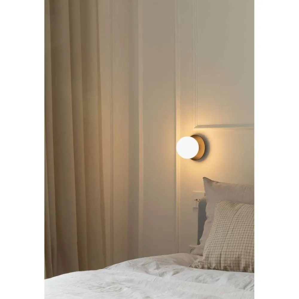 Liila 1 – rund væglampe i sort med opal glas skærm