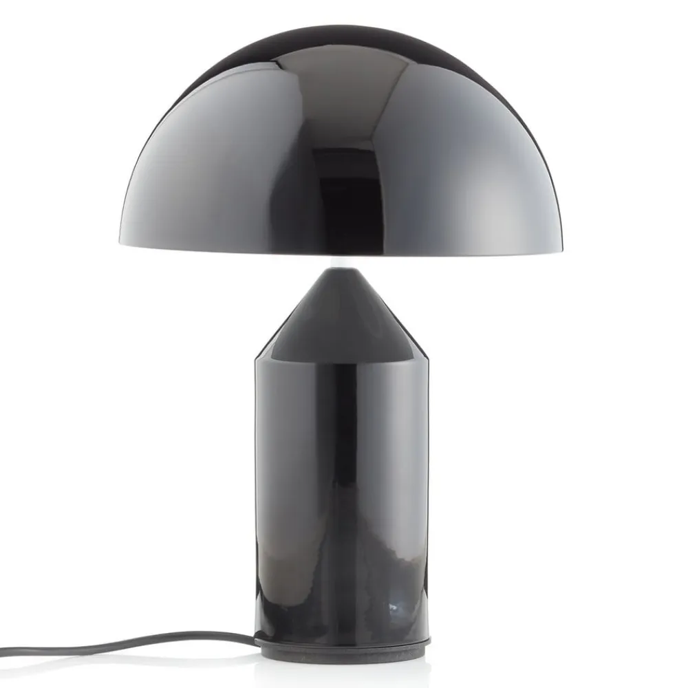 Klassikeren blandt designerbordlamper: Atollo Atollo-bordlampen fra Oluce har et glamourøst og storslået udseende. Den har en cylindrisk lampefod, der spidser til i toppen, og er udstyret med en halvskallet skærm, der danner en enkelt farve med foden. Den halvkugleformede lampeskærm retter lyset nedad på bordoverfladen og skaber en indirekte og meget behagelig accentuering af omgivelserne.