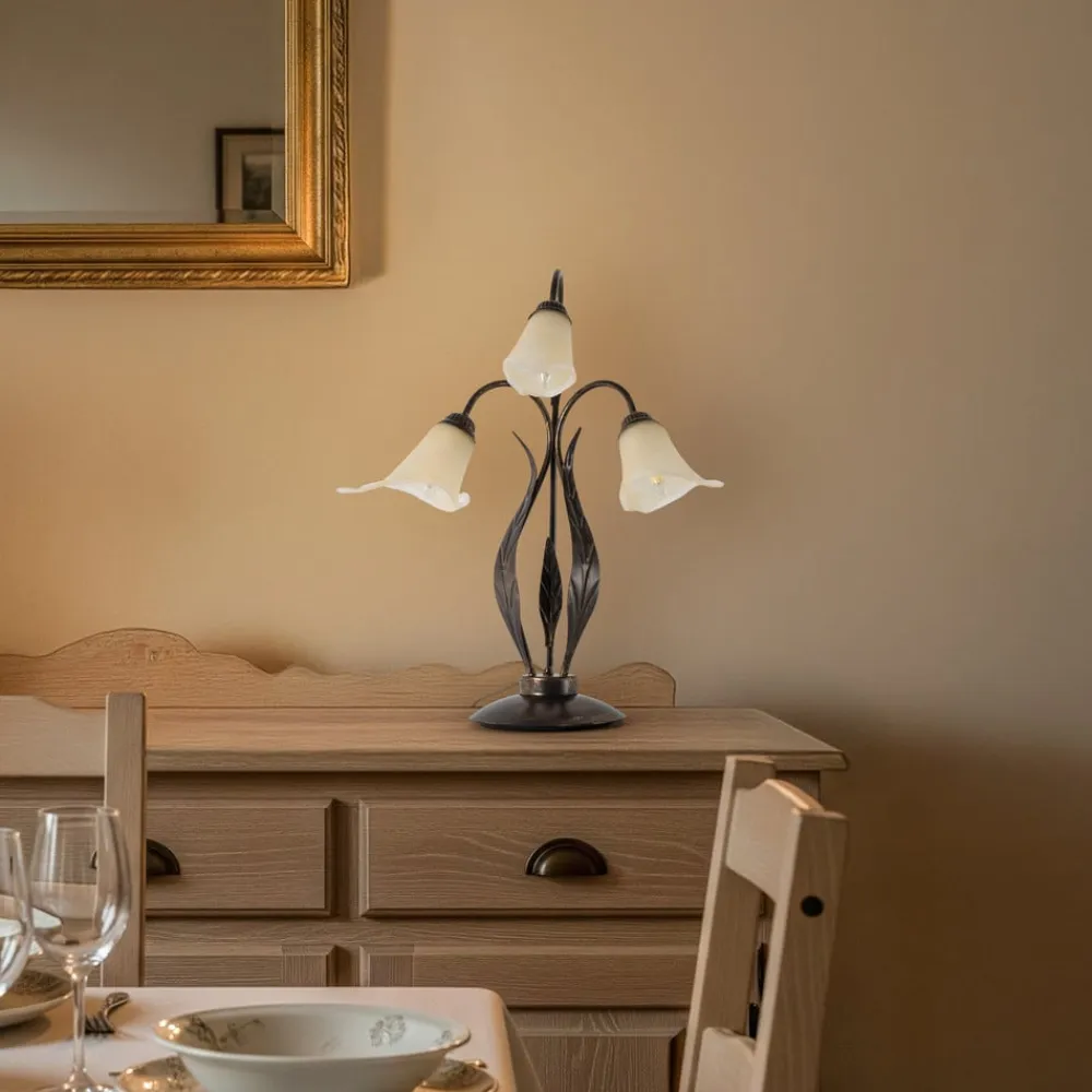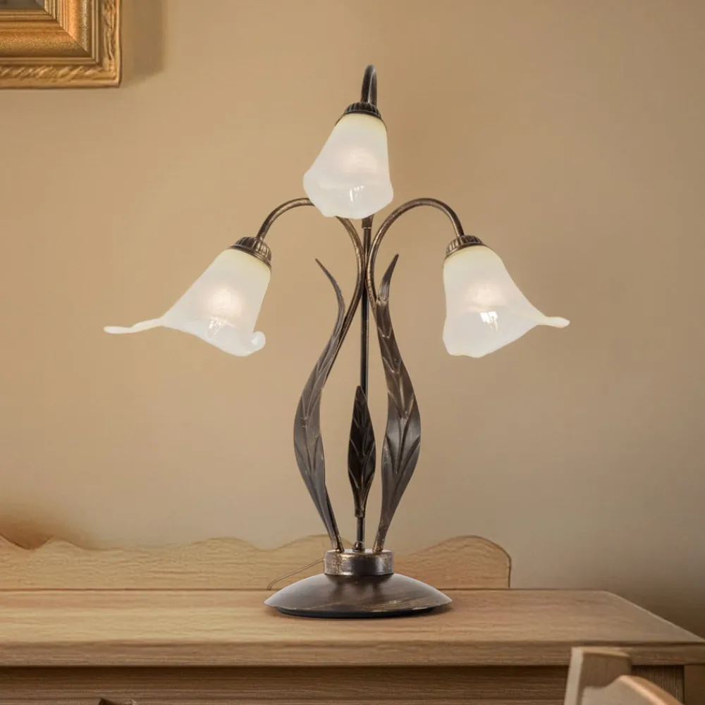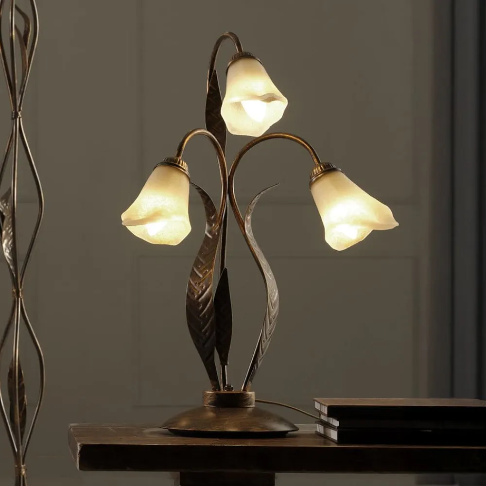 ONLI Alga bordlampe, 3 lyskilder, jern, glas, florentinsk