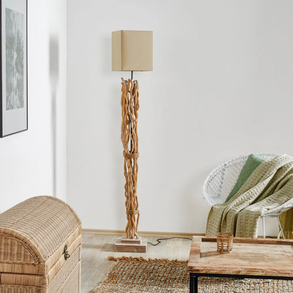Gulvlampe Marica: Harmonisk samspil mellem tekstil og træ