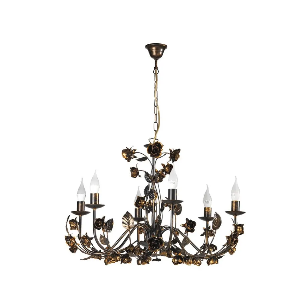 Carolina lysekrone, bronzefarvet, 6 lyskilder, jern
