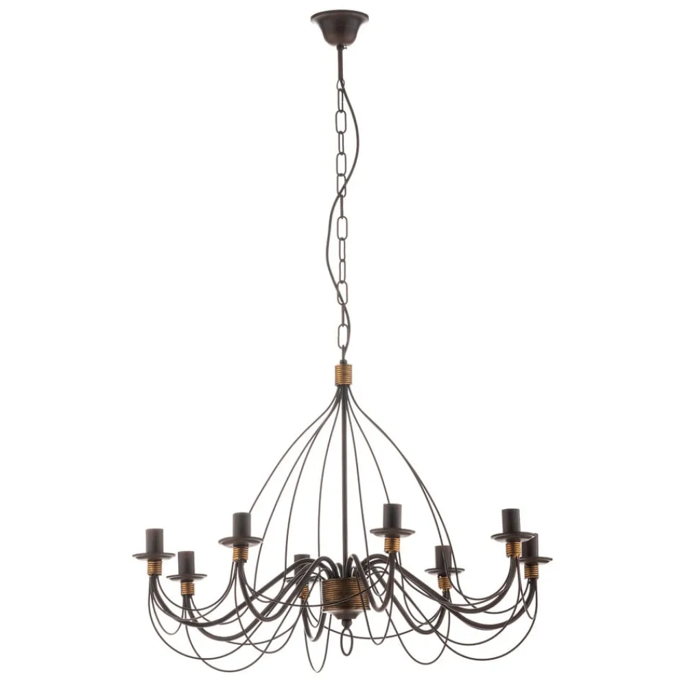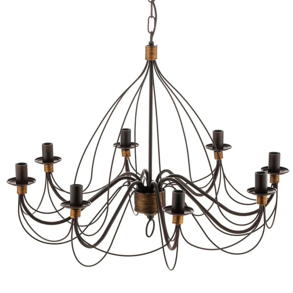 Lysekrone Fiamma Marrone 8 lyskilder uden skærme forener rustik charme med moderne funktionalitet. Fremstillet af robust jern og i en tiltalende mørkebrun og bronzefarve passer denne lysekrone perfekt ind i landlige og rustikke indretningsstilarter. Konstruktionen med 8 lyskilder sikrer en jævn belysning i stuer, køkkener og spisestuer og skaber en varm og indbydende atmosfære.