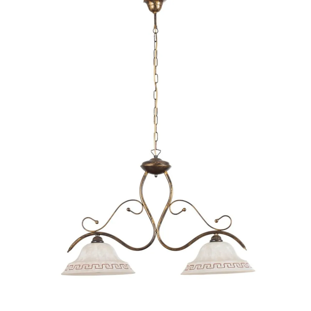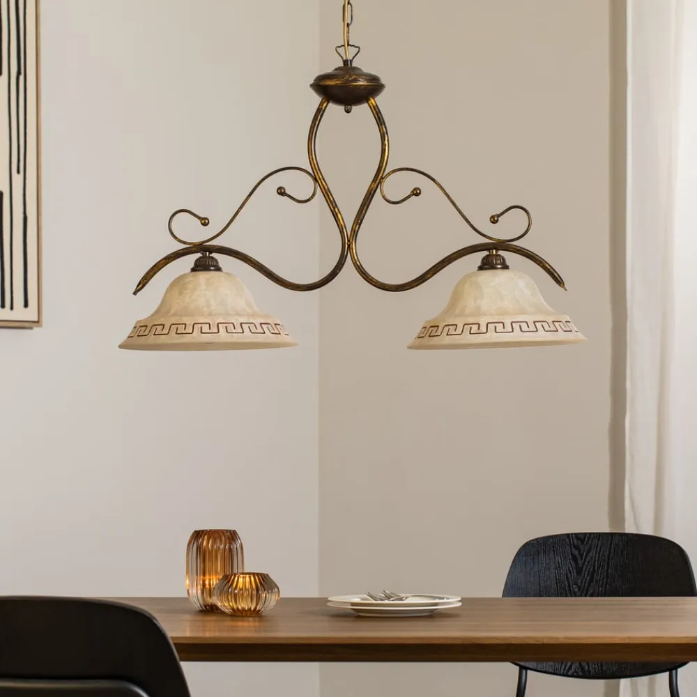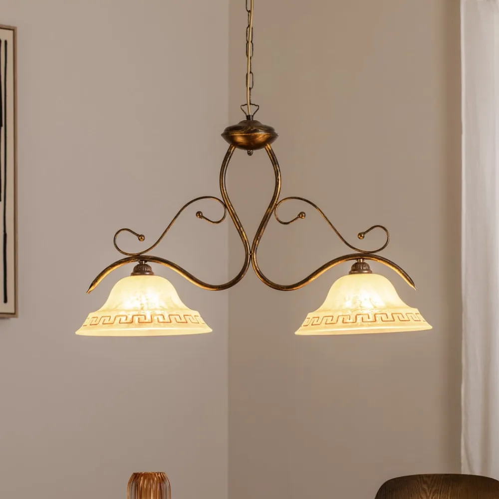 Hængelampen BILIARDO GIORGIO forener rustik charme med tidløs elegance og er et blikfang i enhver bolig. Den er fremstillet af højkvalitetsglas og robust jern og består i en cremehvid og bronzefarvet antik farve, der passer perfekt ind i et landligt eller rustikt miljø. Lampen er fremstillet i Europa og understreger kravene til kvalitet og design.