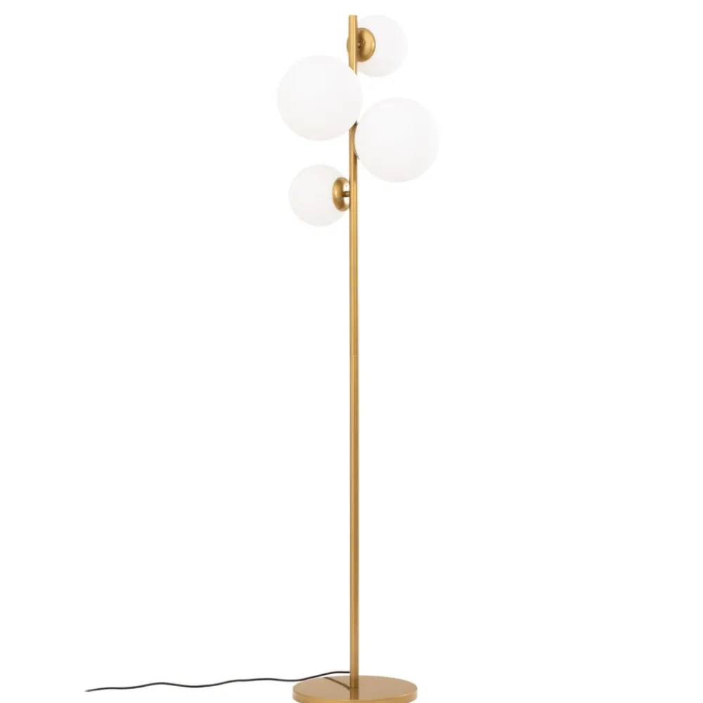 Gulvlampen Fazli kombinerer de ædle materialer glas og metal i en harmonisk komposition, der giver ethvert rum et særligt præg. Den gyldne farve i kombination med hvide accenter skaber en luksuriøs atmosfære, der gør indtryk i både stuen, spisestuen og soveværelset. Denne lampe er ikke kun et funktionelt element, men også et stilfuldt designobjekt, der værdsætter indretningen.