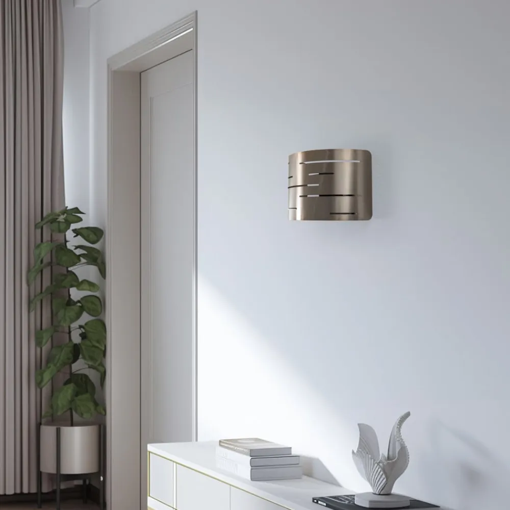 Væglampe Oisin, fremstillet af højkvalitets metal i en elegant gylden farve, sætter et stilfuldt highlight i ethvert rum. Uanset om det er i stuen, spisestuen eller entreen, passer denne lampe harmonisk ind i forskellige indretningsstilarter og giver rummet et luksuriøst præg.