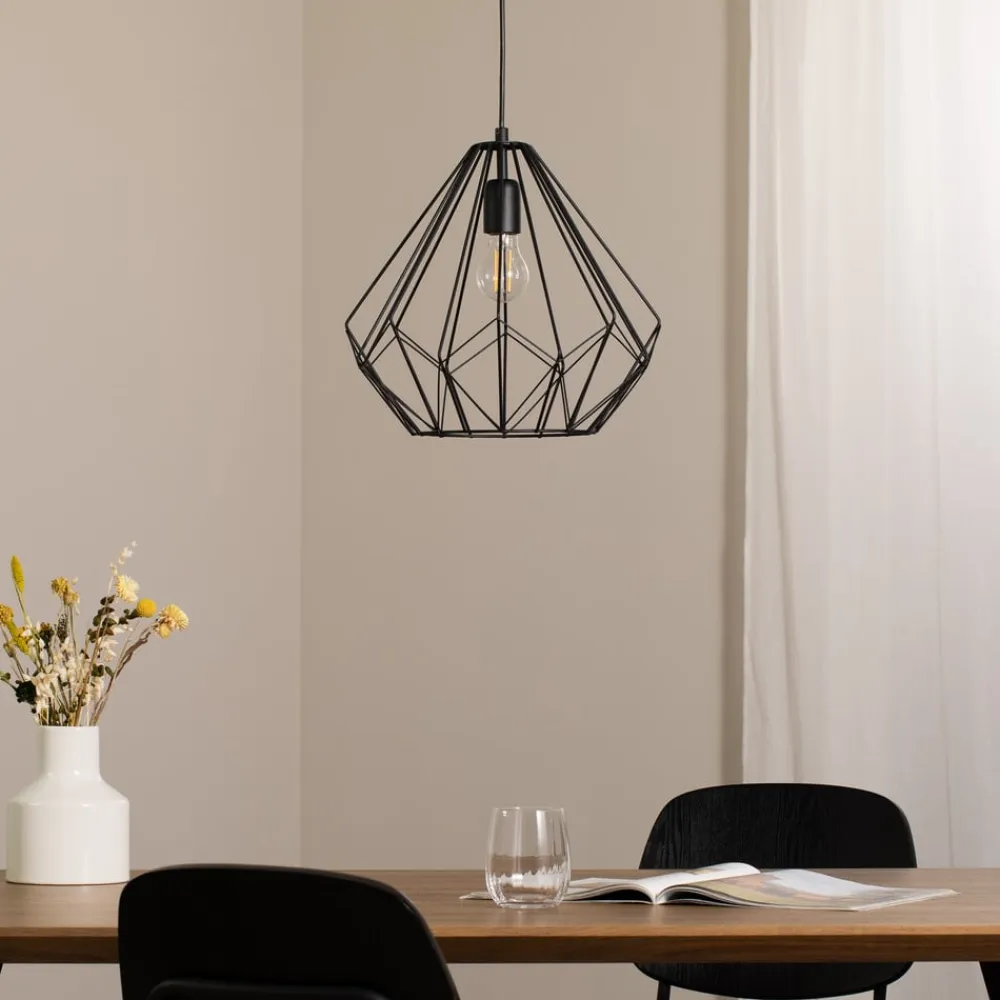 Hængelampen Diamond kombinerer et moderne design med funktionel alsidighed. Fremstillet af højkvalitets jern og holdt i elegant sort, passer denne lampe perfekt ind i forskellige rumkoncepter. Uanset om det er i stuen, spisestuen, entreen eller i køkkenet – hængelampen Diamond sætter stilfulde accenter og skaber en behagelig atmosfære.