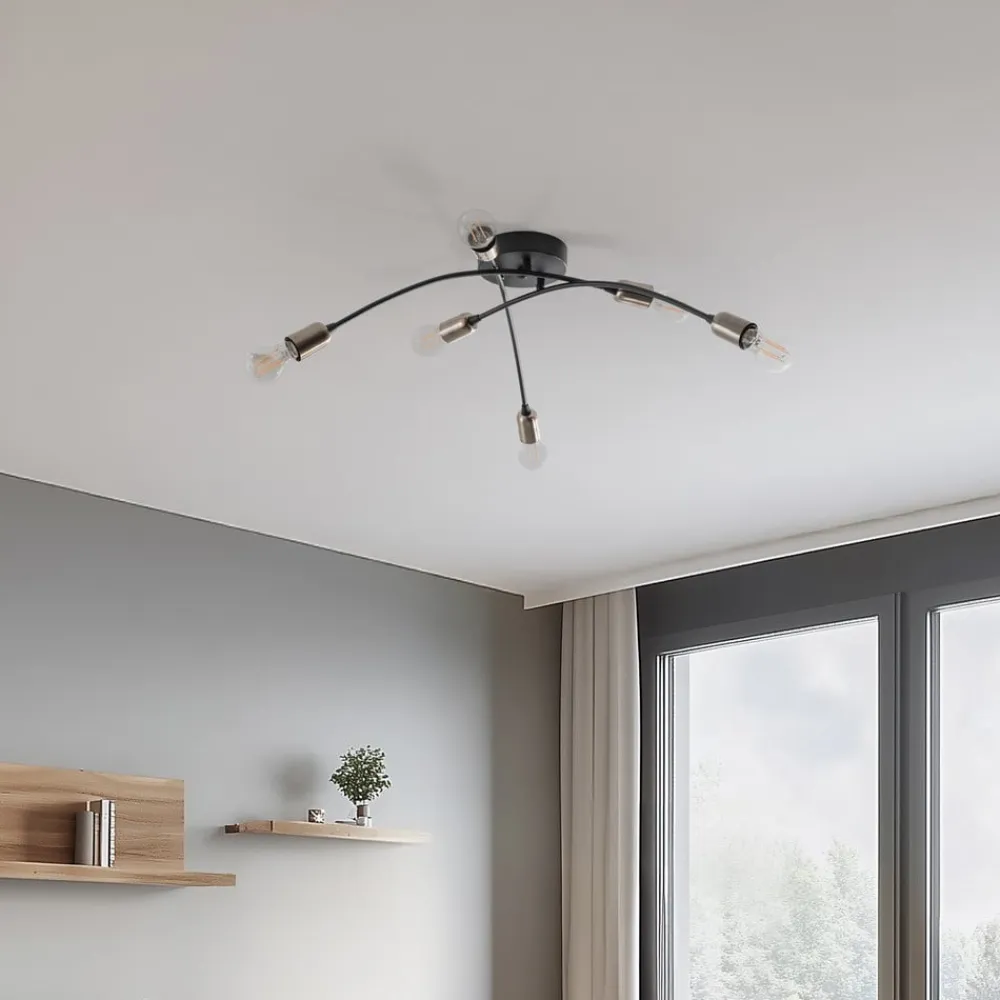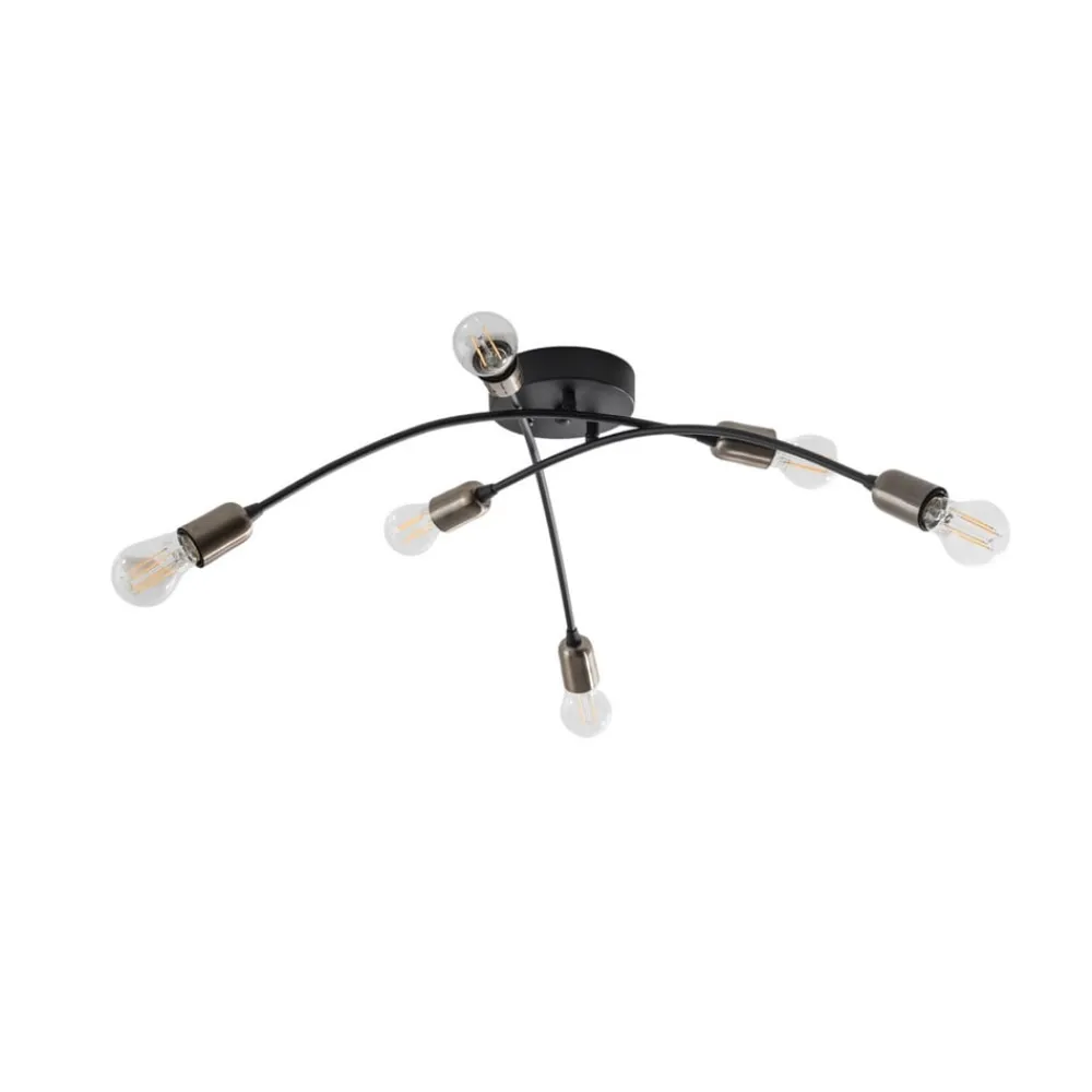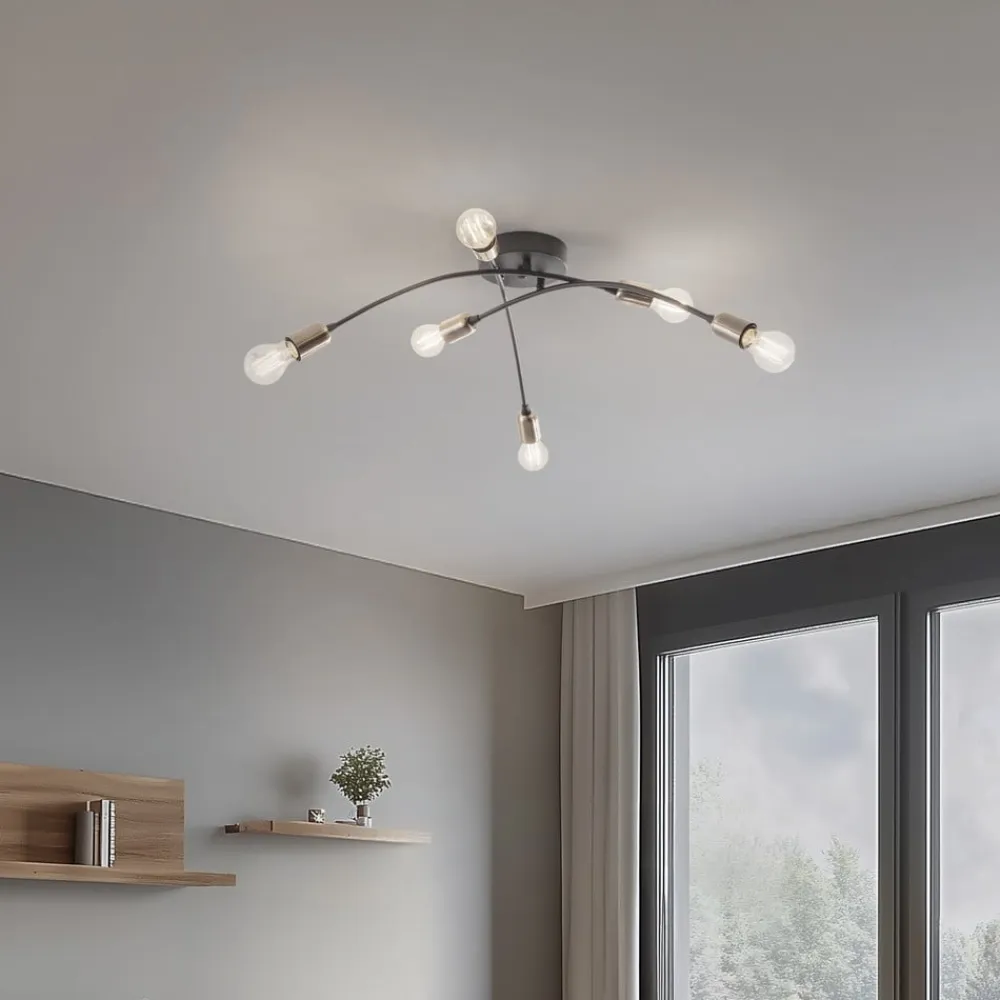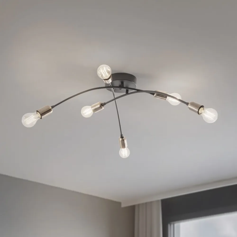 Loftlampen Banana i elegant sort kombinerer et moderne design med funktionel alsidighed. Den er fremstillet af højkvalitetsmetal og passer perfekt ind i forskellige boligområder som stuen, spisestuen, entreen, køkkenet og badeværelset. Med sine seks E27-fatninger giver den en imponerende lysstyrke, der bader ethvert rum i en behagelig atmosfære.