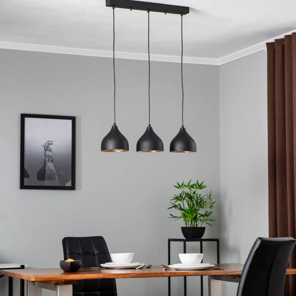 Opviq Pendellamper|Pendellamper>Tattoo 6211 3-lys lineær hængelampe sort/guld