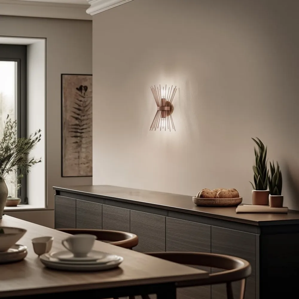 GMN-000010 belysningskoncept: elegance møder funktionalitet GMN-000010 up/down væglampen i kobberfarvet finish er en stilfuld tilføjelse til forskellige boligområder. Med sit moderne design passer den problemfrit ind i æstetikken i stuen, spisestuen, gangen og soveværelset. Armaturet er fremstillet i Europa og er indbegrebet af kvalitet og lokalt håndværk, og den indirekte belysning, som udsendes både opad og nedad, skaber en atmosfære, der kan bidrage til både afslapning og øget produktivitet. Armaturets kobberoverflade reflekterer lyset på en varm måde og bidrager til en hyggelig atmosfære. Selvom der ikke følger en dæmper med denne model, kan lysstyrken justeres efter personlige præferencer ved at installere en ekstern dæmper. GMN-000010 up/down væglampen er mere end bare en lyskilde; den er et udtryk for smag og et funktionelt dekorativt element, der forbedrer ethvert rum.