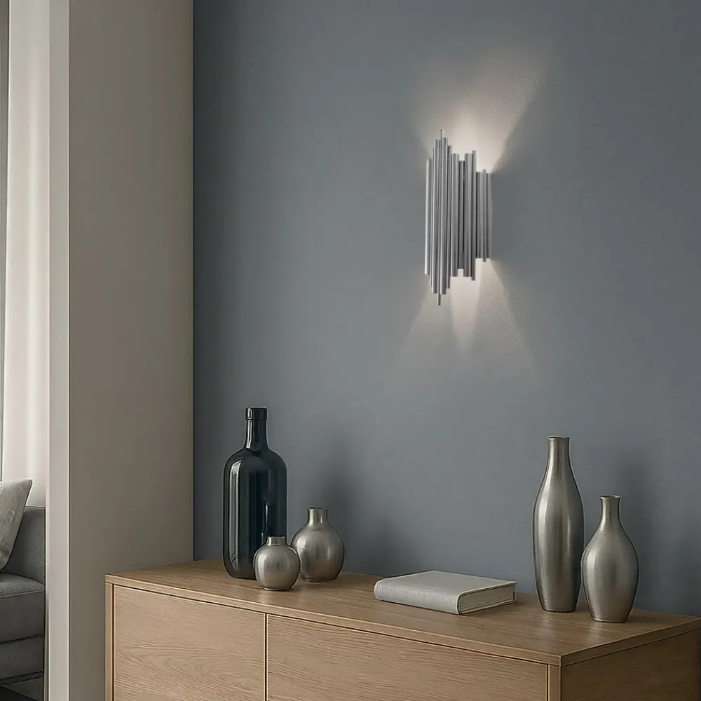 Væglampe Reis imponerer med sit moderne design og den ædle metaloverflade, der giver ethvert rum et luksuriøst præg. Lampen er ideel til brug i stuer, spisestuer og soveværelser samt i entreer og passer perfekt ind i forskellige indretningsstilarter.