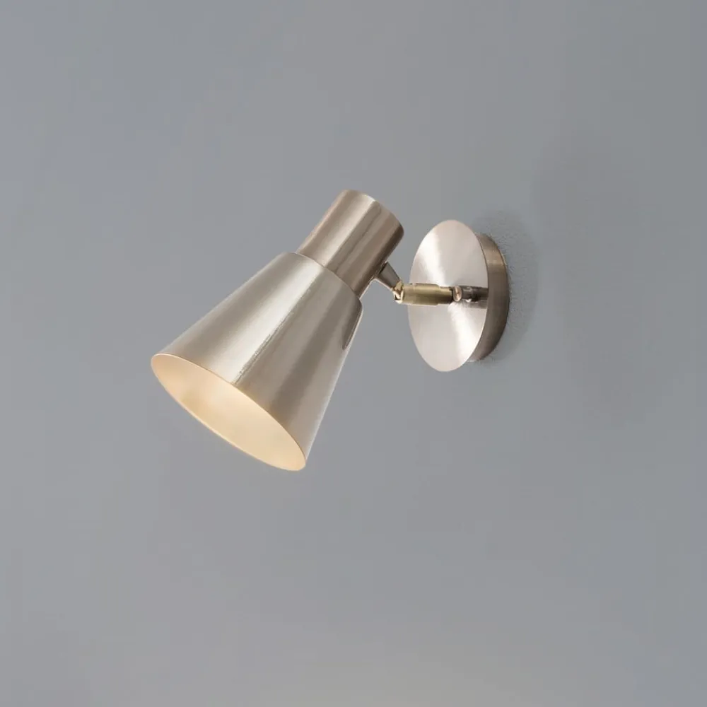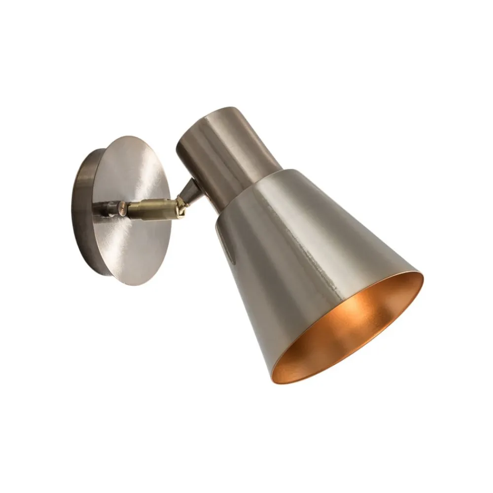 Væglampe Kem imponerer med sit elegante design i højkvalitetsmetal i en elegant messingfarve. Lampeskærmen er bevægelig.