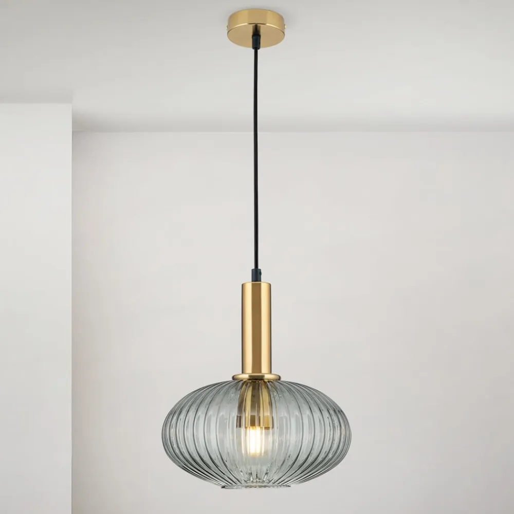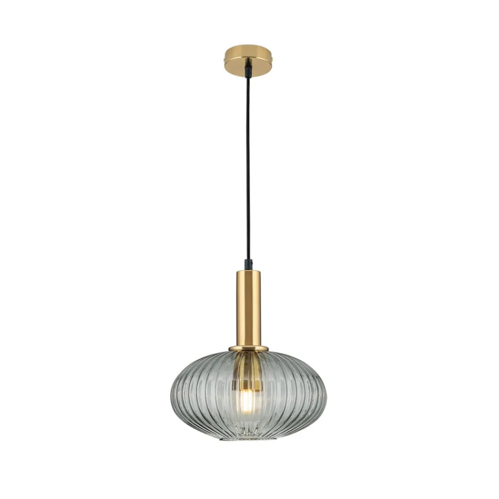 Carneval pendellampe, antik messing/røggrå, Ø 25 cm, glas