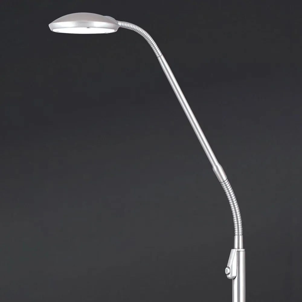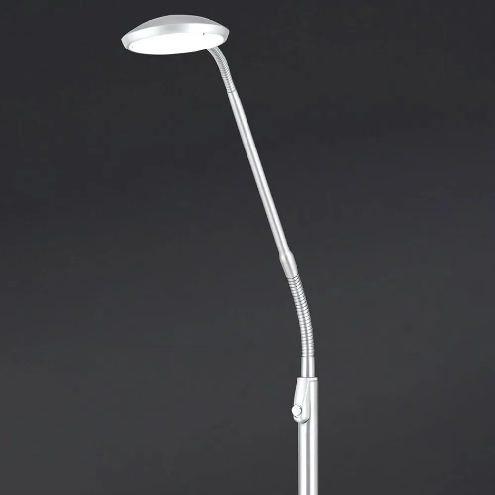 Cobra LED-gulvlampen scorer både med sit moderne design og med variabel lysjustering via en trykknap, der er integreret i stellet, samt med justerbarheden af hovedet via en fleksibel svanehalsarm. En gulvlampe, der kan tilpasses ideelt til individuelle behov med hensyn til lysstyrke og lysfarve. Begge justeringsmuligheder er trinløse. For farvetemperaturen kan der indstilles en værdi mellem 2.200 K og 6.000 K.